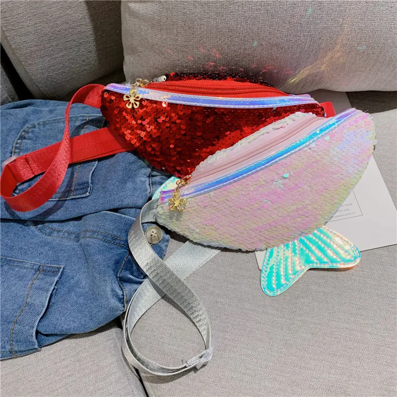 Модная детская поясная сумка с блестками для девочек, нагрудная сумочка на одно плечо, мобильный кошелек для мелочи, Блестящая Сумочка через плечо с русалкой, кошелек