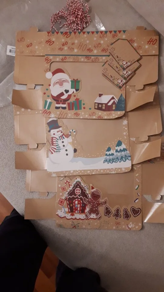 Коробки отличные, они поставляются в разобранном виде, поэтому они не портятся, я буду использовать их, чтобы наклеить конфеты в носках Санты, и размер идеально подходит, потому что они не слишком большие