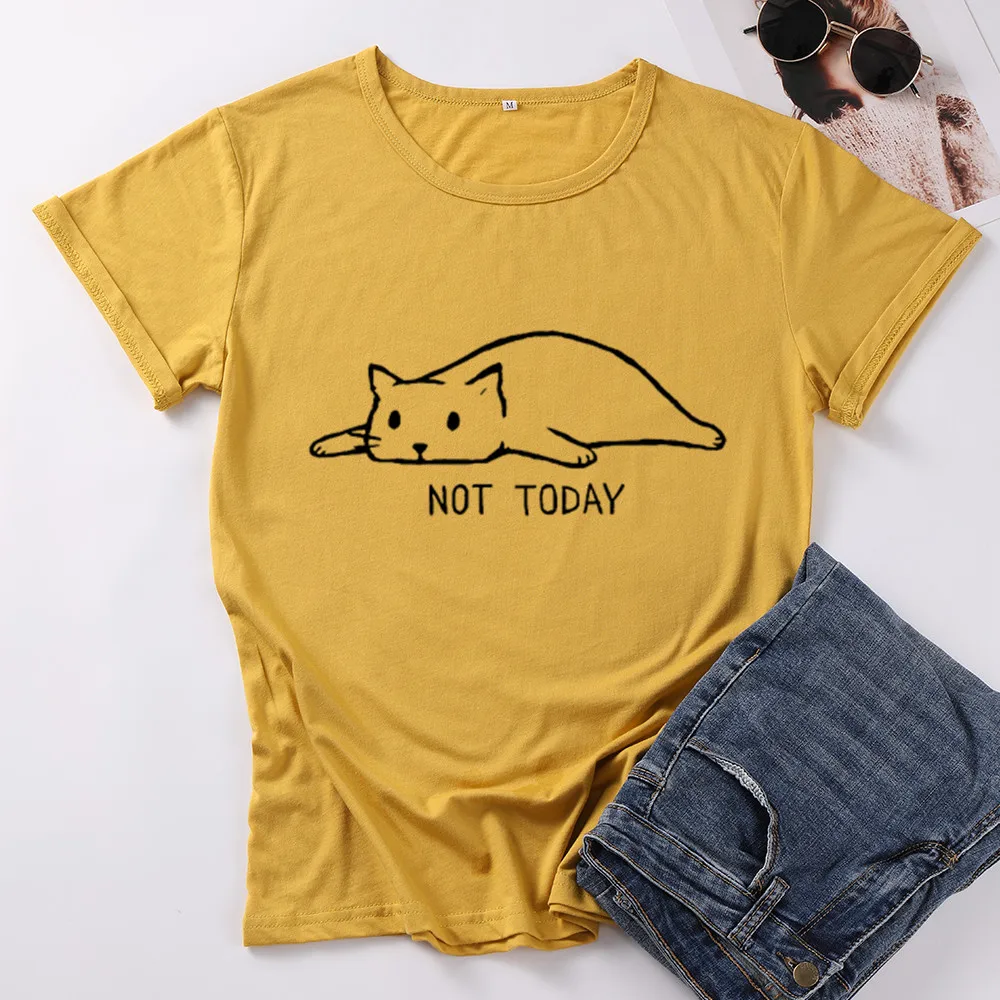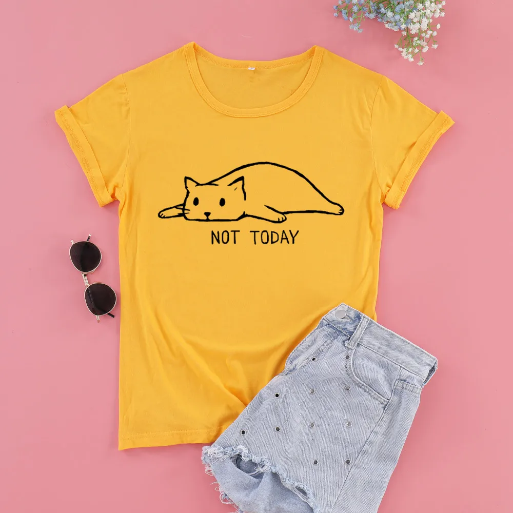 Не сегодня, кошки, мама мамочка, рубашки, модная забавная хлопковая Футболка с буквенным принтом размера плюс, женская одежда с круглым вырезом, футболки с короткими рукавами