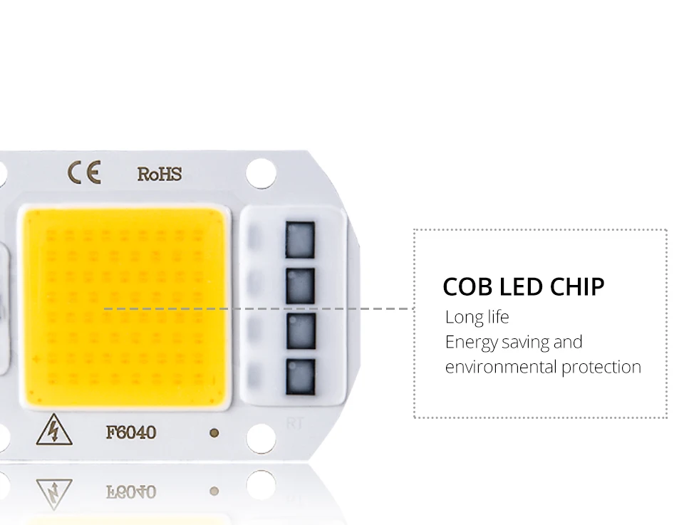 Особенности продукта: Высокая яркость/увеличенный светильник/Быстрое рассеивание тепла Высокий люмен/без мерцания/Энергосбережение Высококачественный чип COB экономит больше энергии Длительный срок службы более 50000 ч 180 градусов угол луча освещает вашу комнату Лучшая цена обеспечивает вам самое профессиональное обслуживание Описание товара: Название: светодиодный чип COB Характеристики: Smart IC, драйвер не нужен Напряжение: 220 В 110 В Мощность: 50 Вт 30 Вт 20 Вт Тип: F6040 Светильник Цвет: Холодный белый: 6000-6500K Теплый белый: 2800-3200K Применение: прожектор DIY прожектор