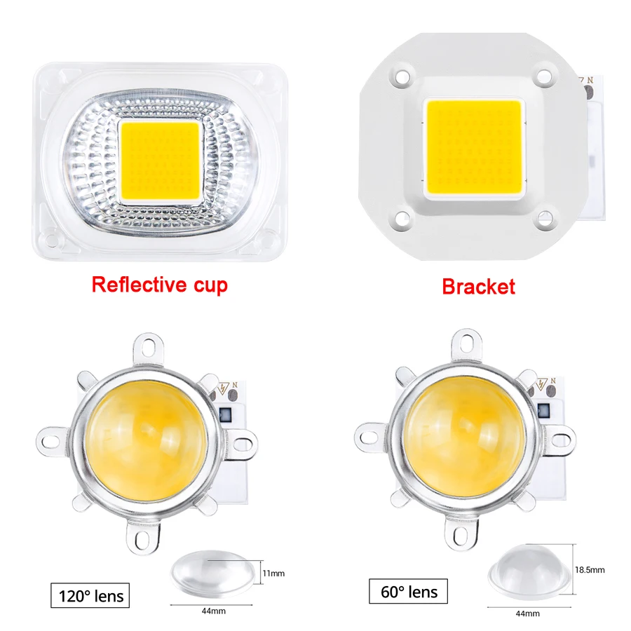 50 Вт 30 Вт 20 Вт Smart IC COB LED Chip Bead с кронштейном отражателя объектива 60120 градусов 110 В 220 В Диодная матрица прожектор DIY