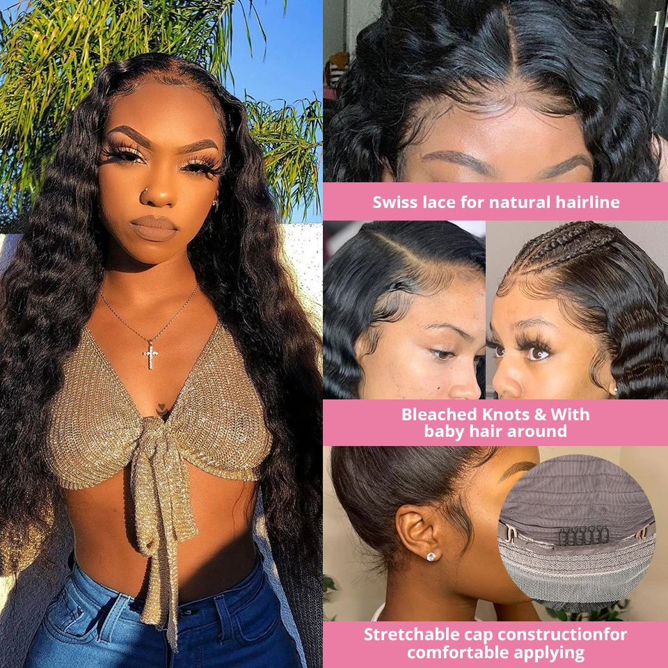 Бразильские волосы, вода, натуральная волна, передний парик, предварительно собранные человеческие волосы, отбеленные узлы, вьющиеся парики для женщин, DJSbeauty