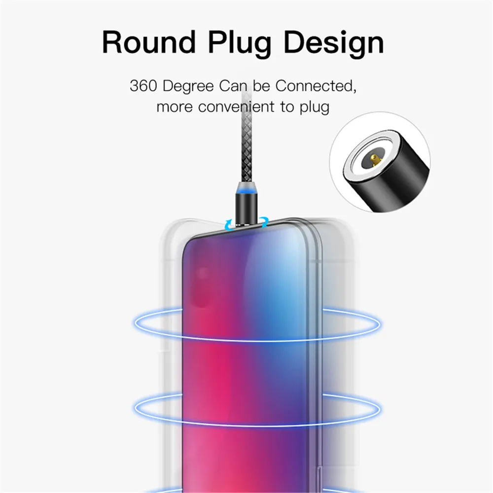 Магнитный зарядный кабель Micro USB Type-C, 1 м, 2 м, с поворотом н...