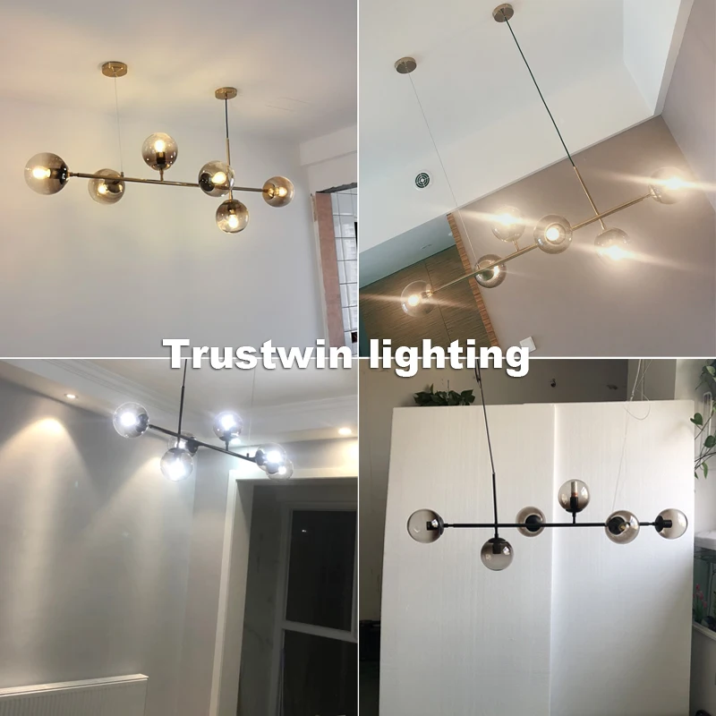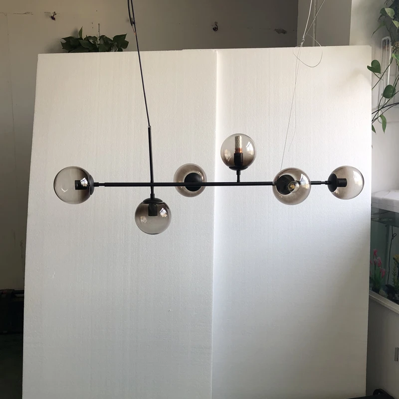 Современная линейная светодиодная Люстра для столовой, вертикальный, горизонтальный, стеклянный шар, железная балка, светодиодный весной светильник
