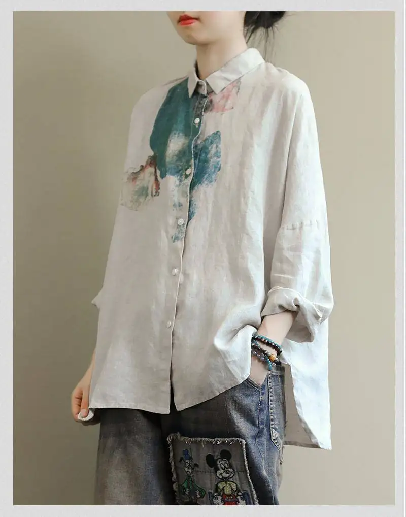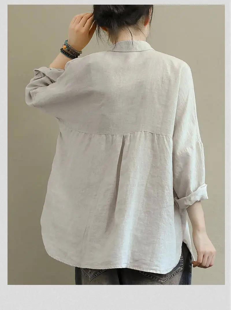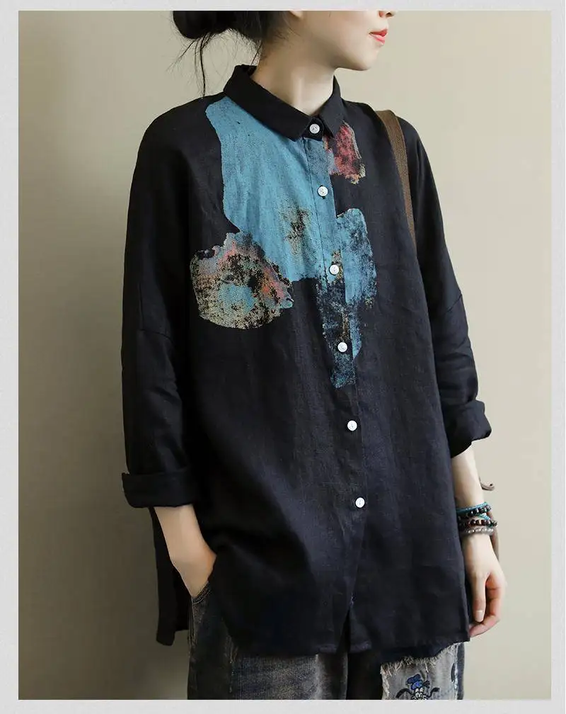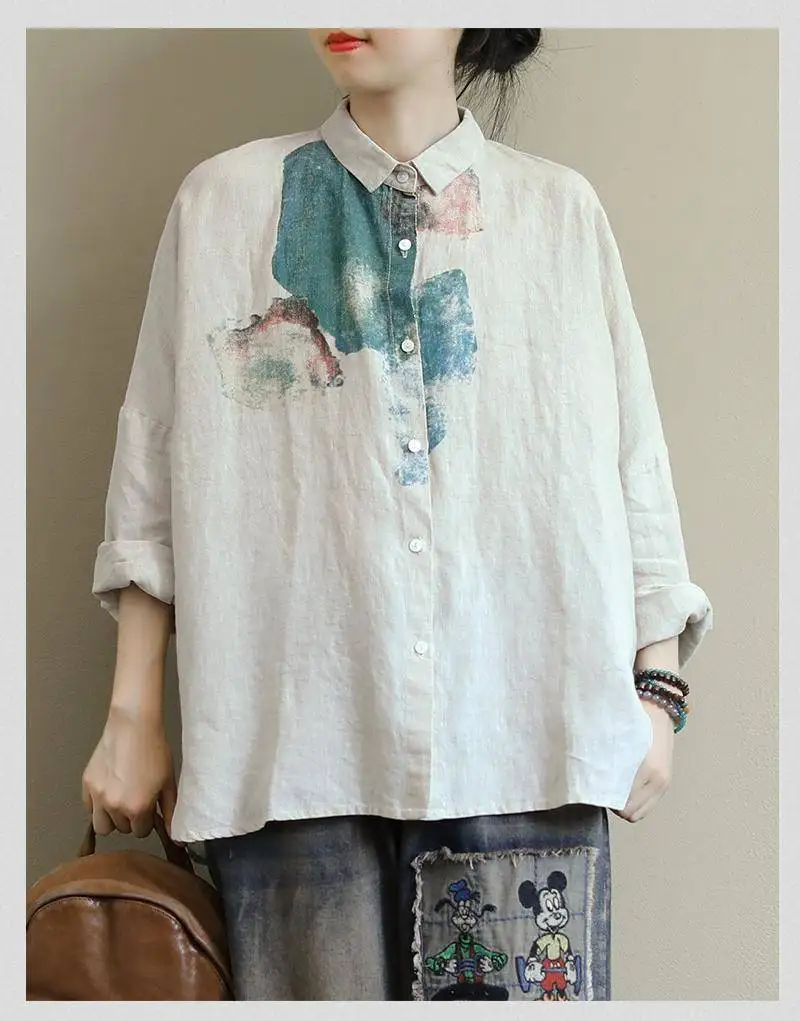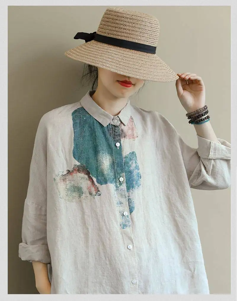 Женская свободная рубашка с длинным рукавом, из хлопка и льна