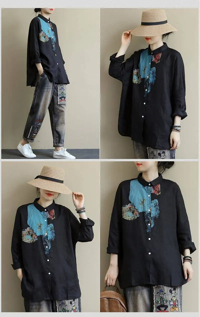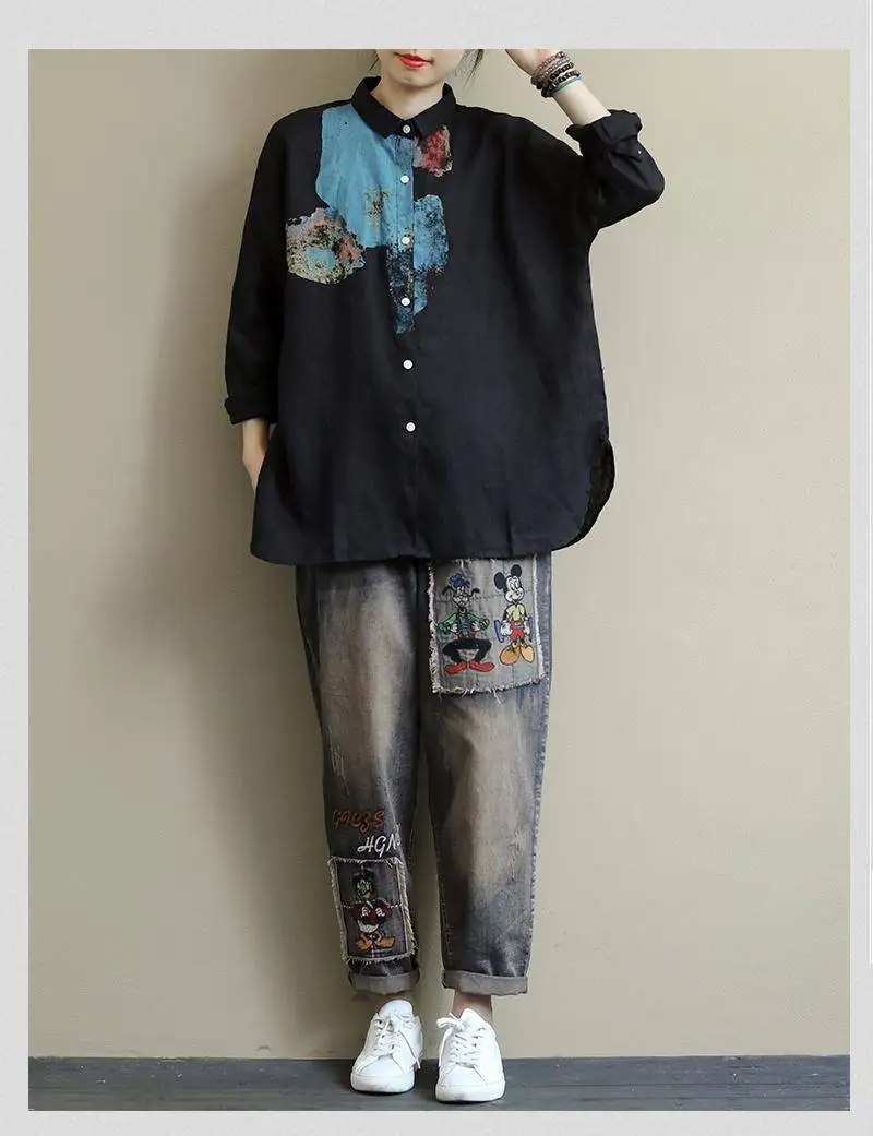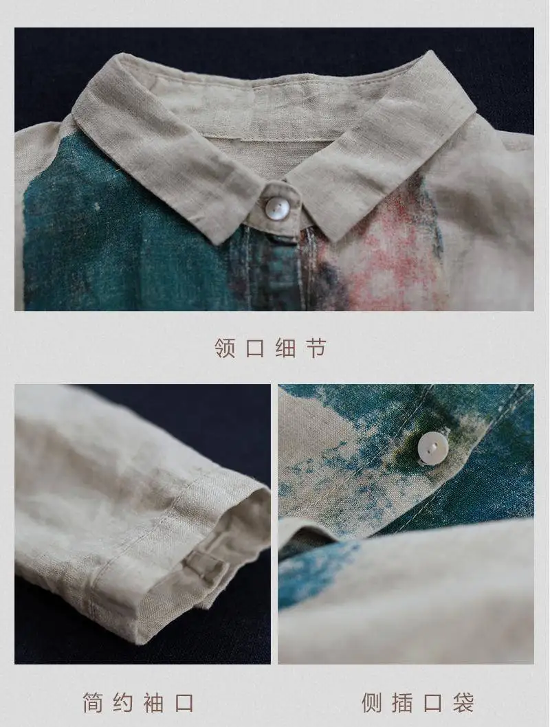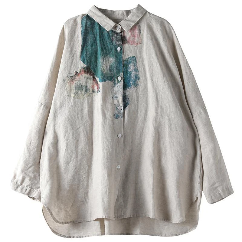 Женская свободная рубашка с длинным рукавом, из хлопка и льна