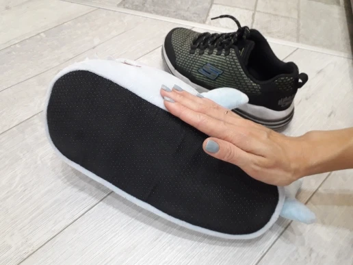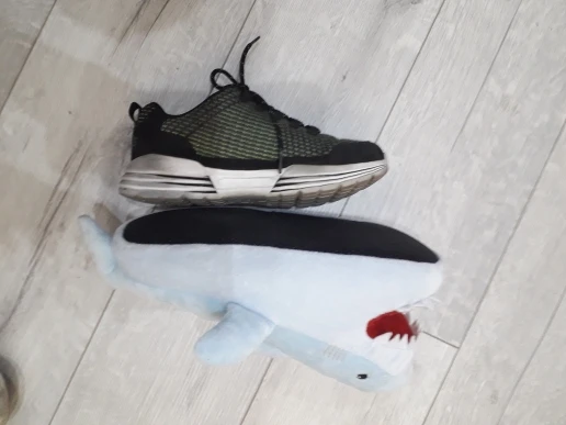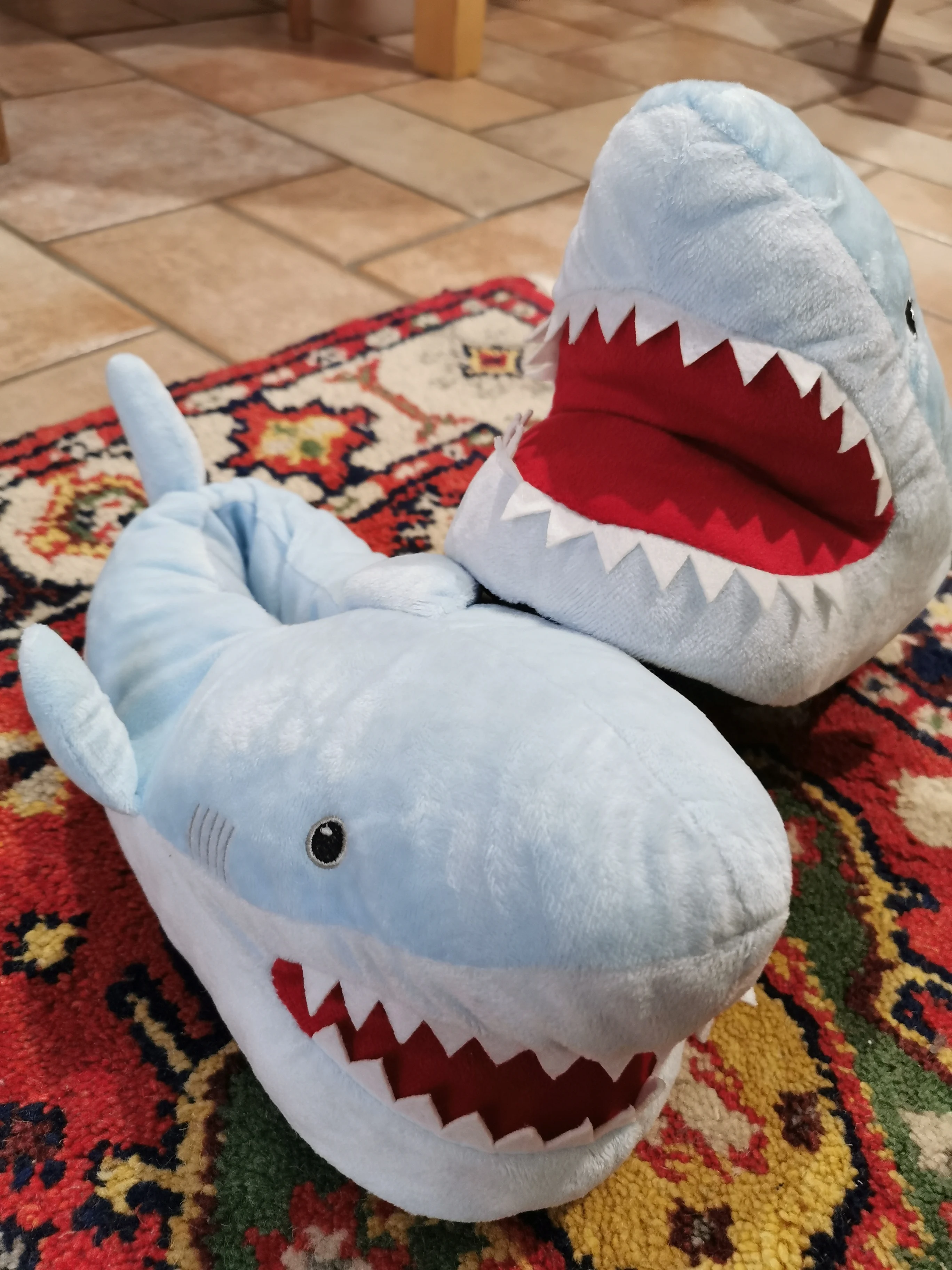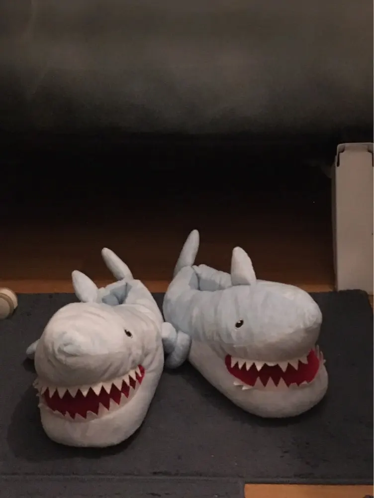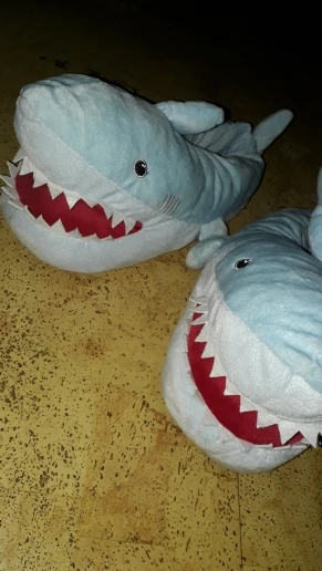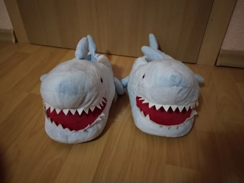 дуже задоволена)) теплі і милі акули 9 з 10⭐ один бал зняла бо при ходьбі плавники торкаються один одного і трохи некомфортно тому доводиться ставити ноги ширше ніж зазвичай... але я ні про що не шкодую)) ще в них голова хитається коли тупаєш і таке відчуття ніби щелепа закривається і відкривається ❤️❤️❤️ Також дуже задоволена швидкістю замовила 11 листопада а 28 листопада вже були в мене))