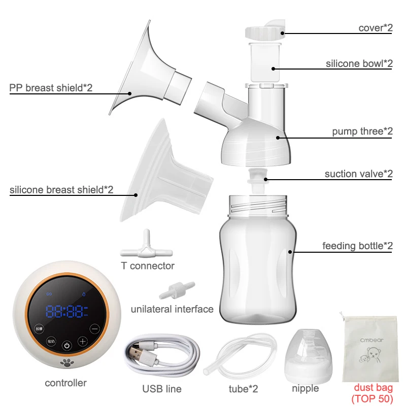 Новое обновление Cmbear двойнойодиночный электрический молокоотсос мощный всасывающий бесшумный молокоотсос infantil USB молокоотсос с светодиодный