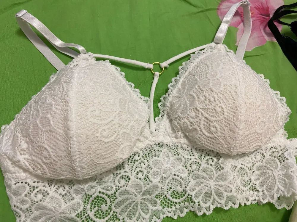 Заказывала черный и белый. Заказ пришел быстро. Качество хорошее, нитки ее торчат. Девочки, это для груди от 2го размера. Чёрный смотрится красиво, а вот белый 50% из 100... Когда надела белый бюстгальтер, иллюзионно стало казаться, что грудь висит...а вот черный балдёжный