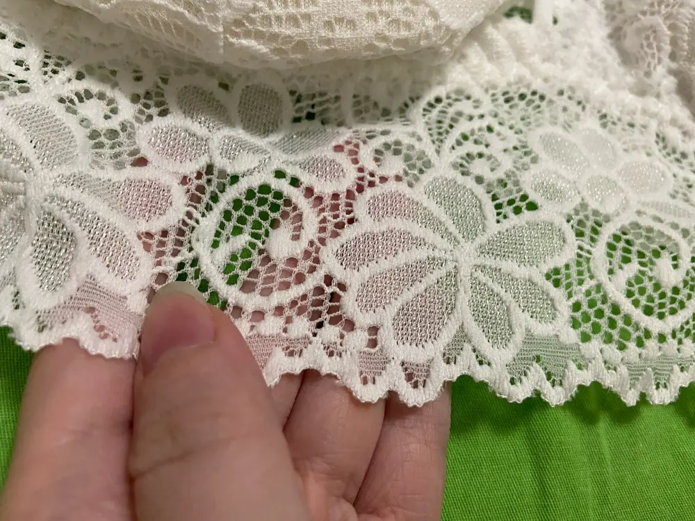 К сожалению не подошëл по размеру, маломерит. А так пошито аккуратно нитки не торчат, кружева очень мягкие.