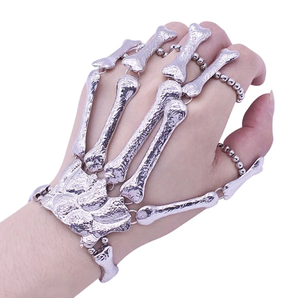 Хэллоуин реквизит подарок Ночной клуб вечерние панк браслет, соединенный с кольцом на пальце Готический Череп Скелет