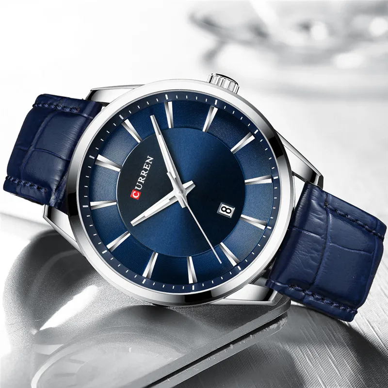 Часы наручные CURREN Мужские кварцевые, спортивные брендовые Роскошные водонепроницаемые в стиле милитари, армейские деловые, с ремешком из натуральной кожи, 8365