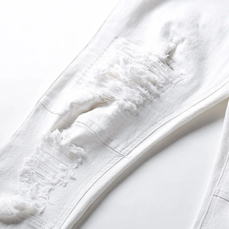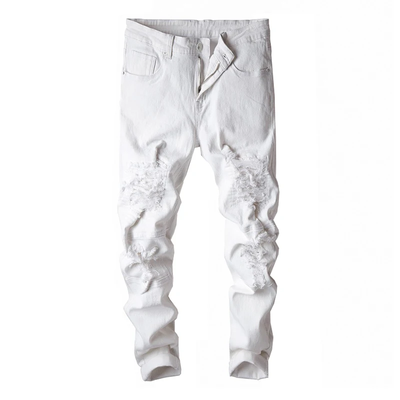 Мужские рваные джинсы Sokotoo, белые зауженные джинсы с дырками, Стрейчевые брюки в стиле пэчворк