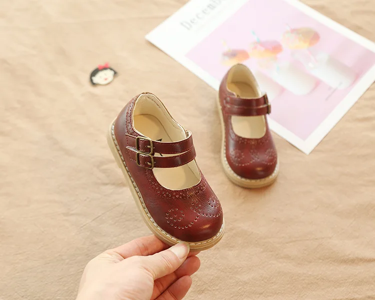 Детская обувь; Кожаные туфли принцессы для девочек; Вечерние свадебные туфли в римском стиле; Черная детская обувь для малышей; Повседневная дышащая обувь с перфорацией
