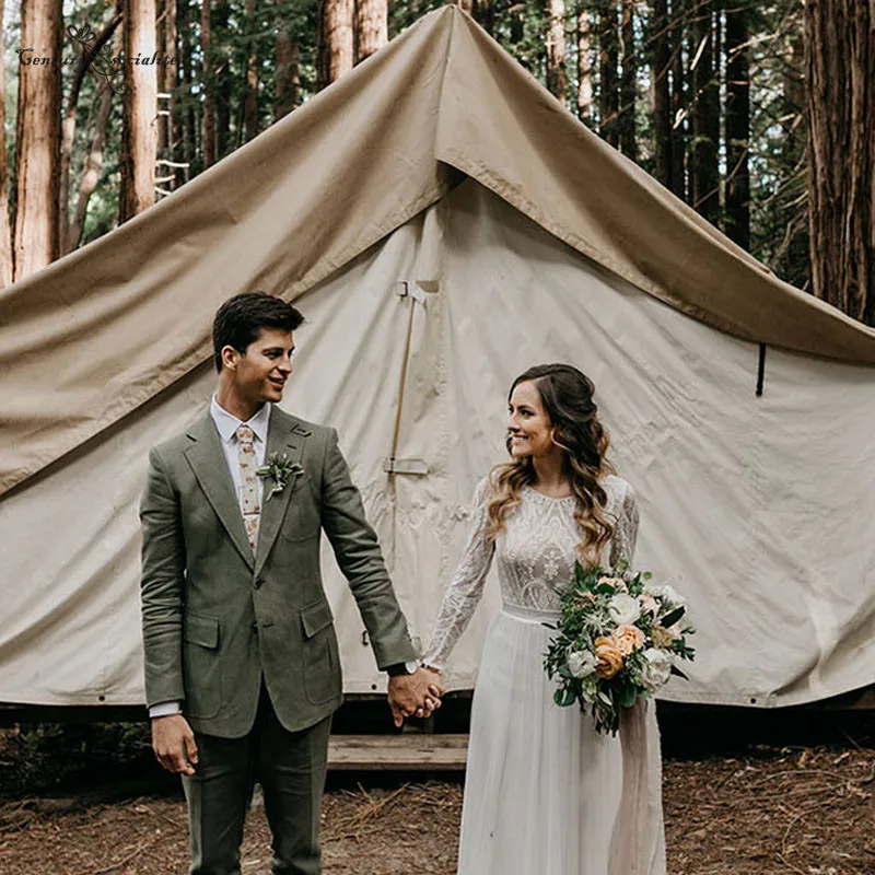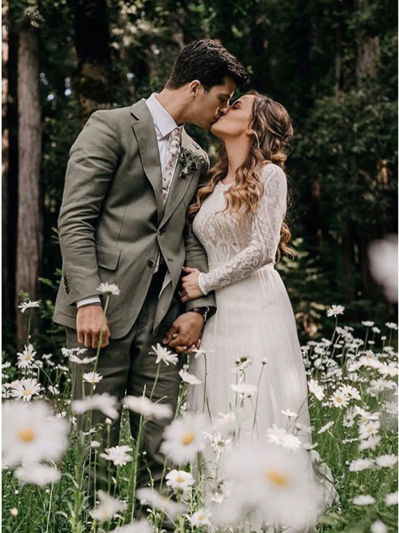 Женское свадебное платье в стиле бохо, кружевное шифоновое платье-трапеция с длинным рукавом, богемные свадебные платья, свадебное платье невесты, 2021