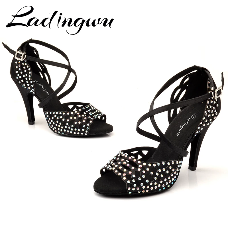 Женские туфли для латиноамериканских танцев Ladingwu, черные атласные туфли с лазерными стразами, танцевальные кроссовки