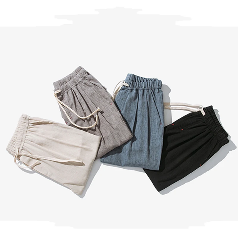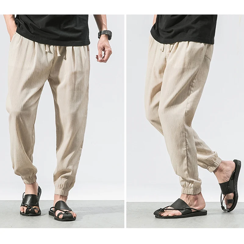 Брюки мужские из тонкого хлопка и льна, повседневные деловые штаны, свободные брюки в китайском стиле, с эластичным поясом, одежда для весны и лета