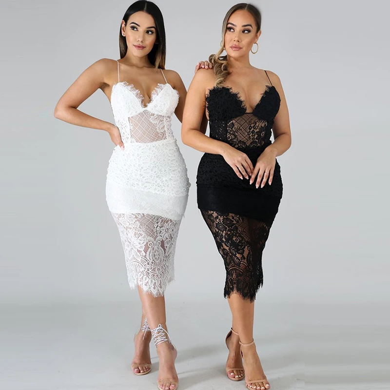 Женское кружевное Платье До Колена, белое, черное облегающее платье с v-образным вырезом и открытой спиной, вечерние облегающие платья для клуба, для лета