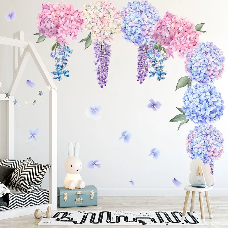Фиолетовая лаванда, цветок, наклейка на стену, гостиная, спальня, диван, фоновое украшение, домашний декор, комбинированные самоклеящиеся наклейки