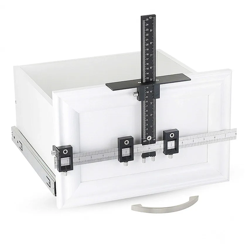 Новый, улучшенный и доступный. Установите его один раз и используйте его повторно без дополнительных измерений, этот шаблон джиг позволяет вам измерить идеальное положение отверстия для ручек шкафа, тяг и ручек.