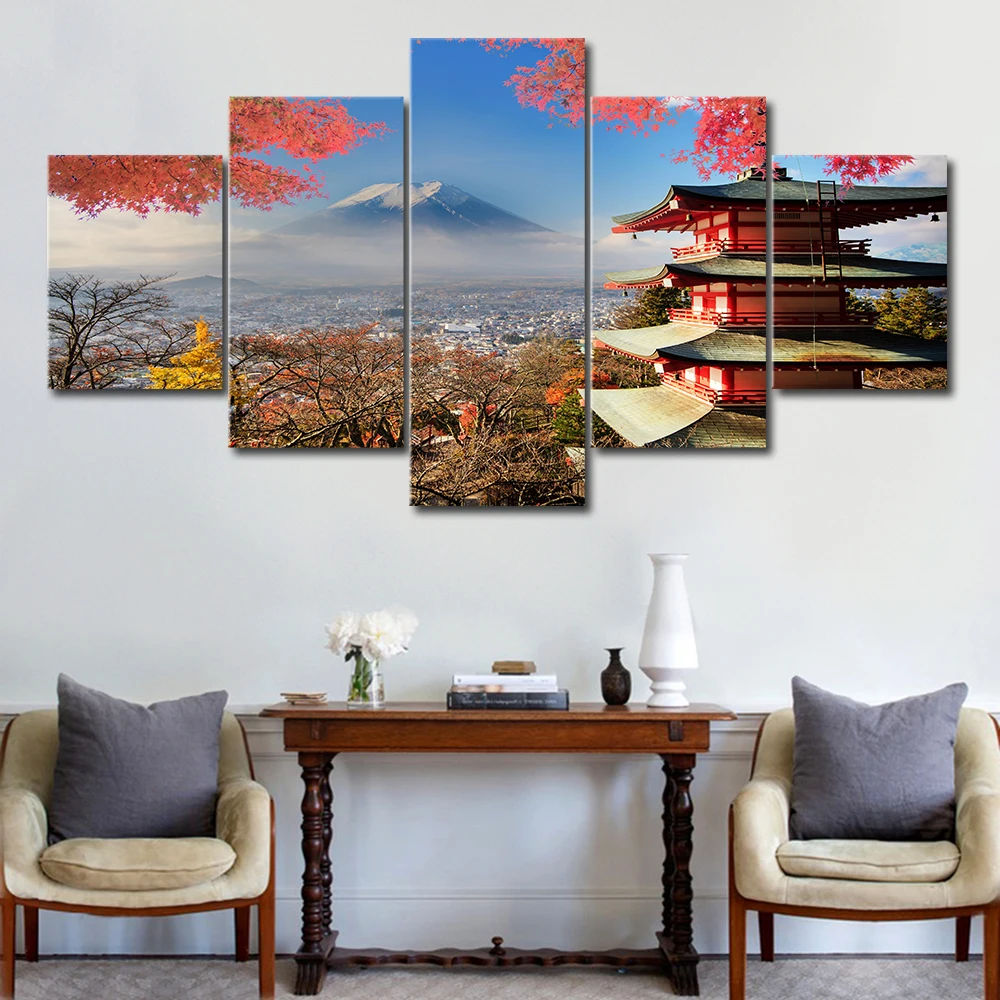 Пагода горы Фудзи, Картина на холсте, пейзаж, плакат, Современное украшение для дома, гостиной, настенная живопись