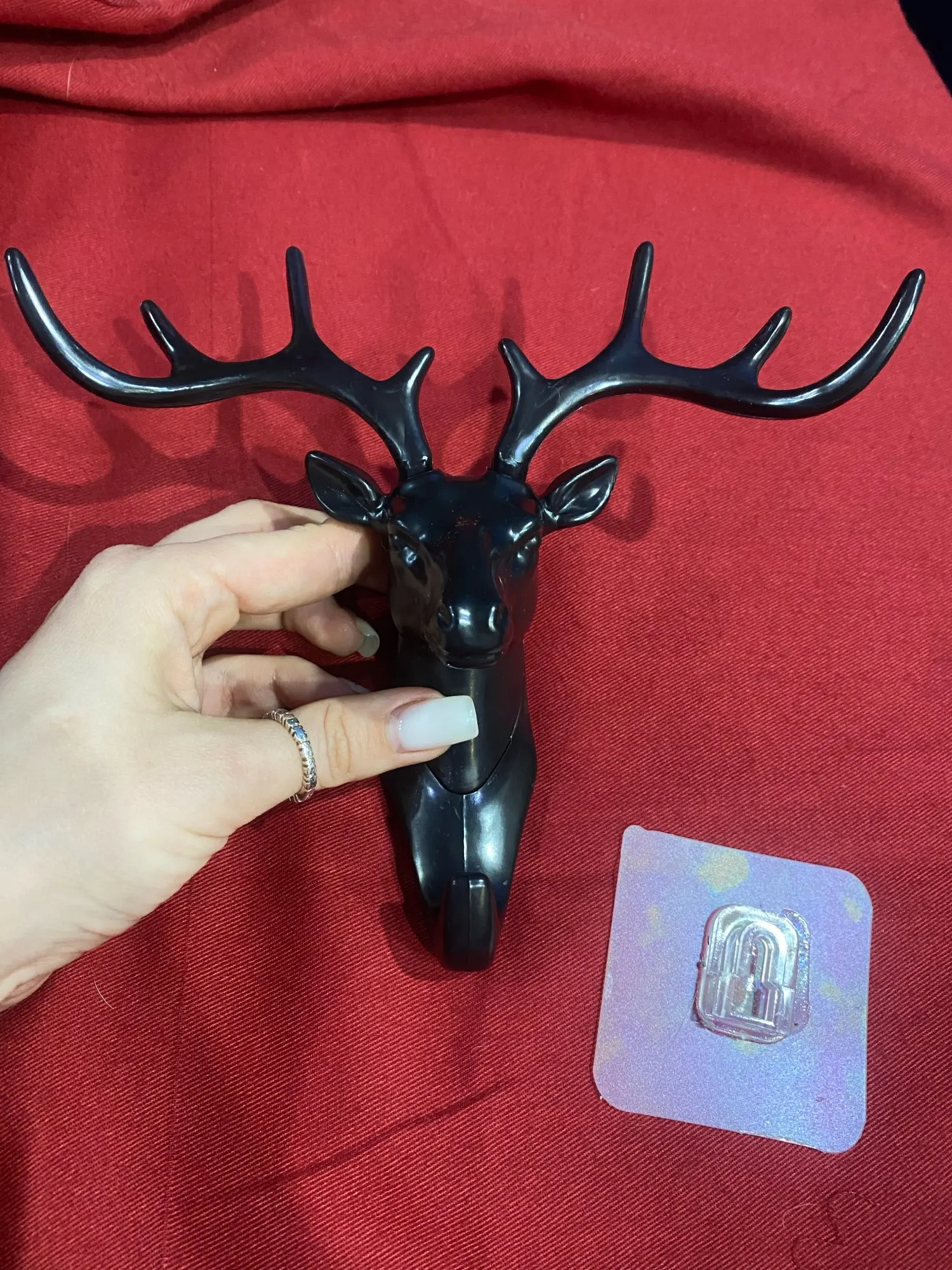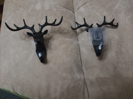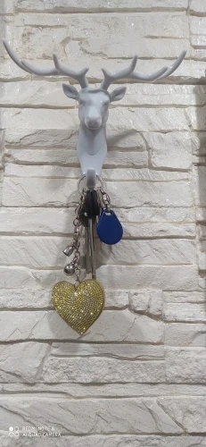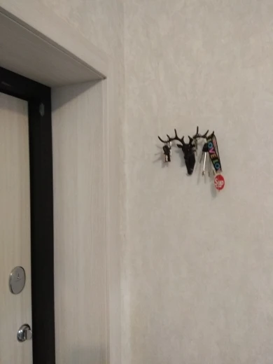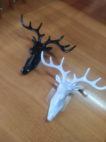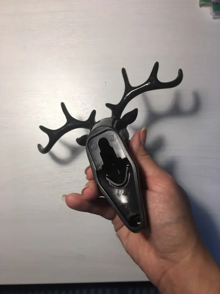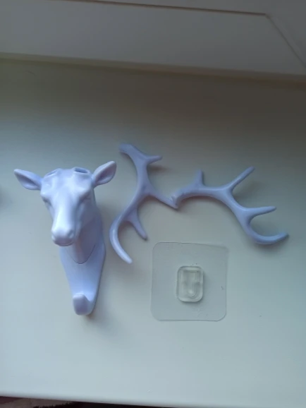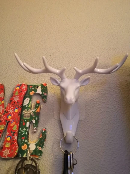 Интересная и удобная штука. Пришёл заказ достаточно быстро, на почту, упакована хорошо. Рога съёмные, вставляются, один рог крепко держится, второй выпадает (пришлось карнуль супер клея и все держится отлично). Олень одевается на крючок и липкий скотч к стене. Смотрится стильно, крючок крепкий, можно не только ключи повесить. С продавцом не общались