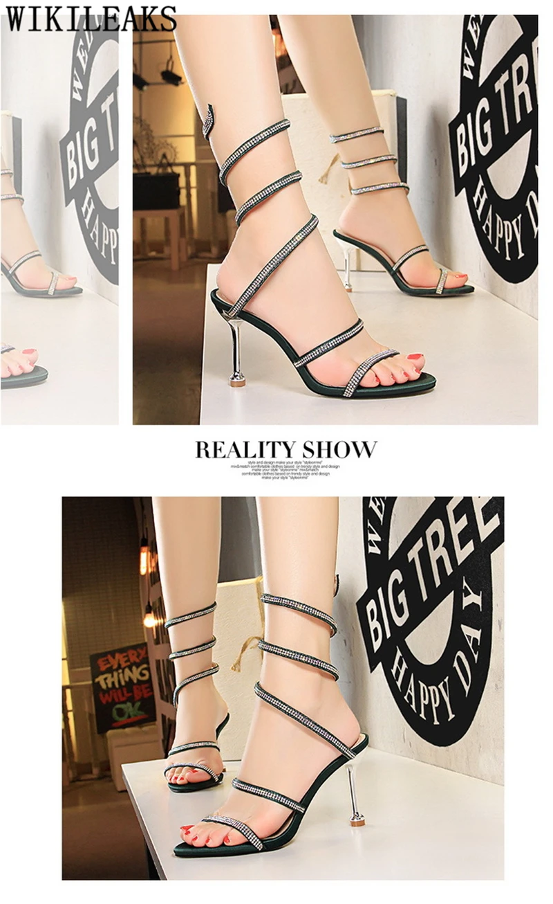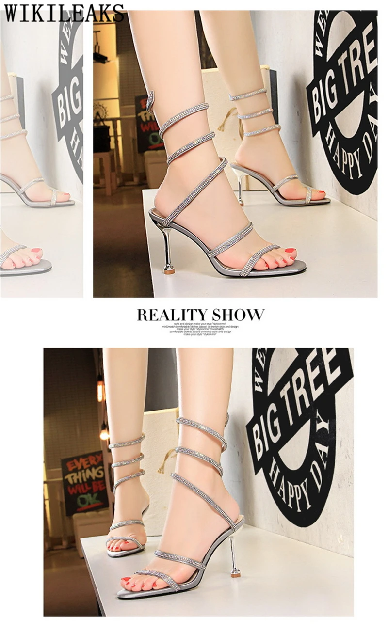 Сандалии-гладиаторы; Женская обувь со стразами; Босоножки на высоком каблуке; Женская обувь для вечеринок; Роскошные Босоножки на каблуке; Свадебная обувь для невесты