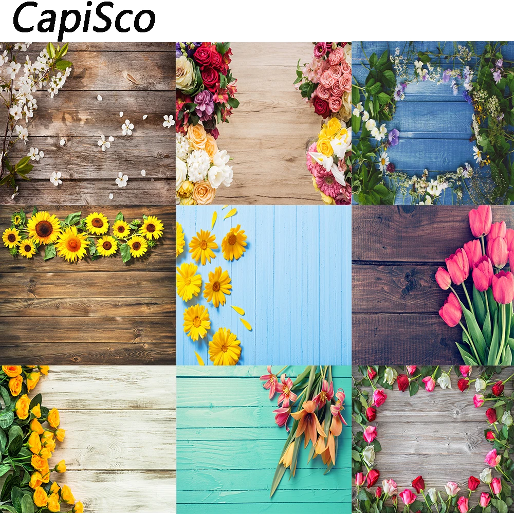 Фон для фотосъемки новорожденных с изображением деревянных досок и цветов