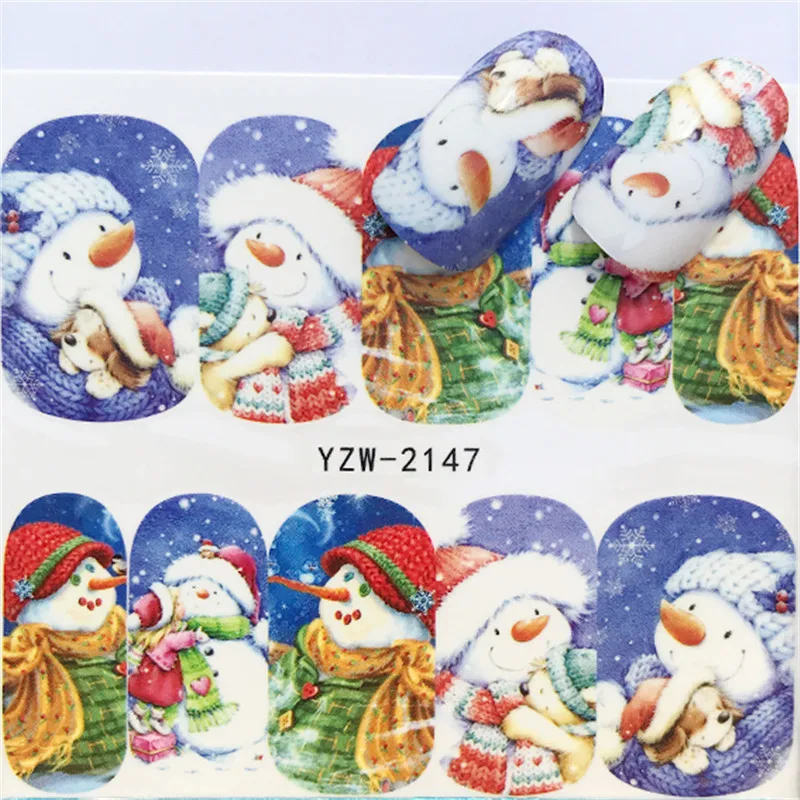 Новинка 2022, наклейки для дизайна ногтей, новогодние слайдеры, татуировки, рождественские наклейки на воду, Санта-Клаус, снеговик, полный дизайн, наклейки