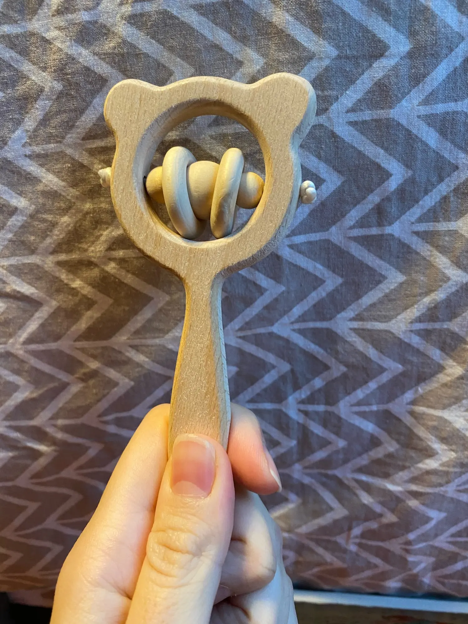 Хорошая игрушка-прорезыватель. Цвет, внешний вид совпадают с фото. Товар отправили и доставили быстро. Внешних повреждений никаких нет, Деревянная часть гладкая. Продавцу +