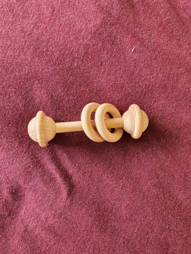 соответствует моим ожиданиям. маленькая, для 9мес. младенца самое то. в ручке хорошо сидит, и не слишком маленькая чтоб поранился. занимает на какое-то время, не так чтоб надолго. на фото уже погрызенная в течении недели примерно) но она сильно гладкой и не была. пришла без особенностей, в составе большой посылки.