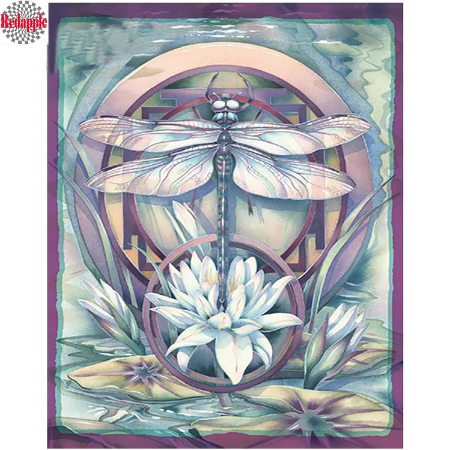 Алмазная картина полная Алмазная Вышивка Цветы Лотос Стрекоза узор 3D DIY наборы крестиков мозаика декоративный кристалл
