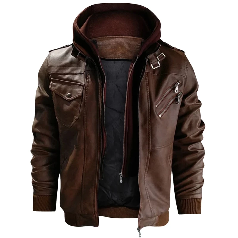 Куртка мужская кожаная с капюшоном, модная повседневная мотоциклетная Байкерская кожаная куртка, пальто, Осень-зима S-3XL