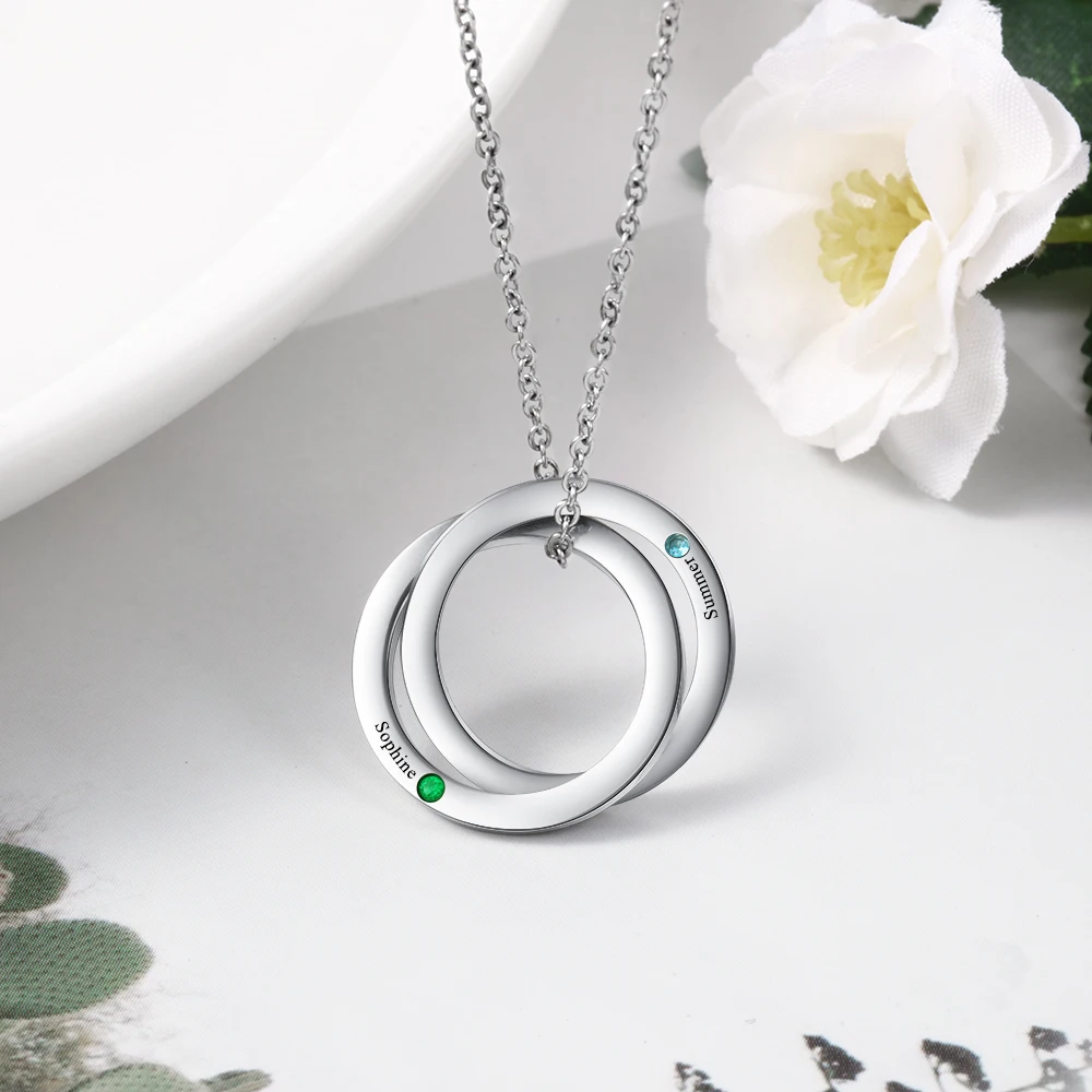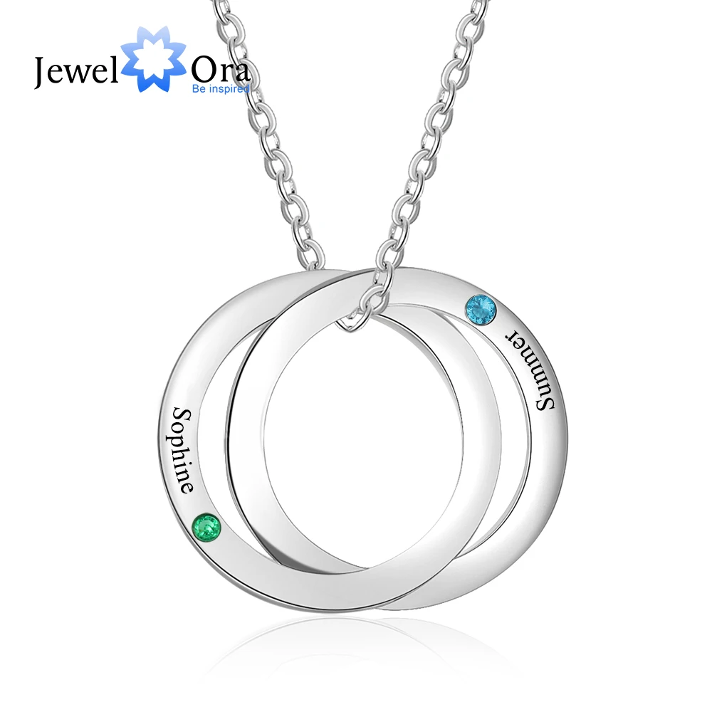 Персонализированная подвеска с двойными кругами и камнем на день рождения, персонализированное имя, гравировка из нержавеющей стали, ожерелье, подарок для пары (JewelOra NE103258)