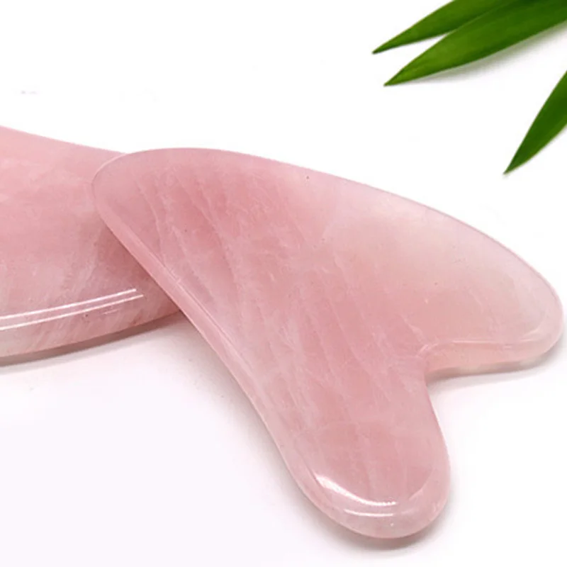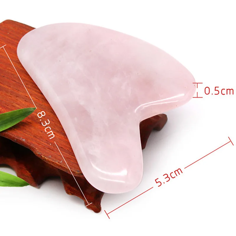 Китайский скребок из розового кварца с нефритом Guasha, инструменты Gua Sha для акупунктуры, терапии под давлением лица, шеи и спины