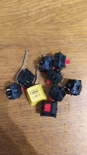 Заказал 24 кнопки на замену красным свичам в моей алиэкспрессной клавиатуре metoo/zero, так как оригинальные очень паршивого качества и быстро выходят из строя. Замучался перепаивать их с места на место. Кнопки перепаял - работают. На долго ли их хватит -- время покажет. Нажатие приятное, но не Varmilo, конечно. Продавец положил два кейкапа со Спанч Бобом. Спасибо! :)