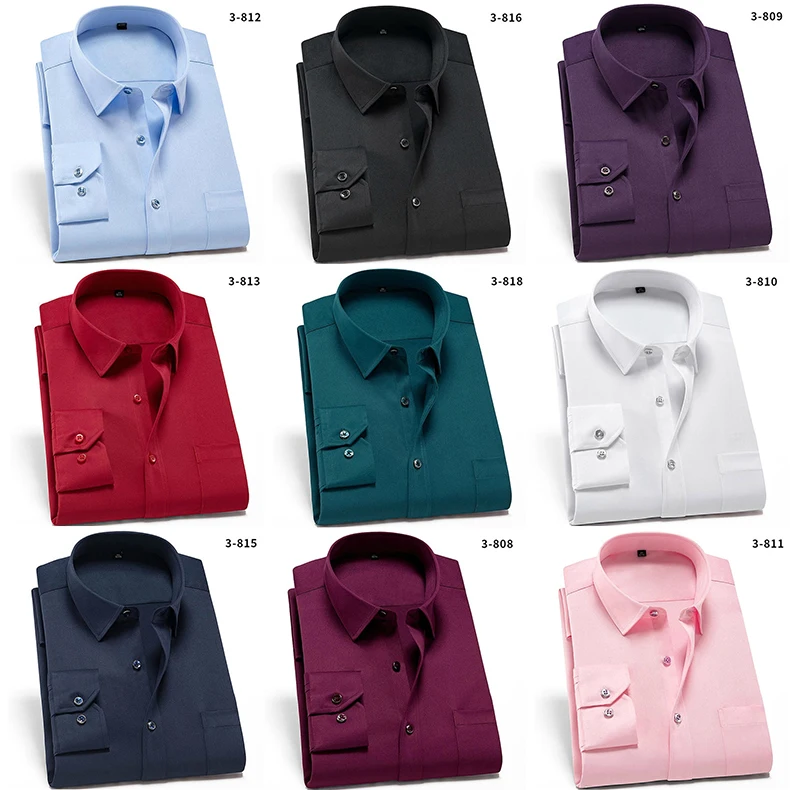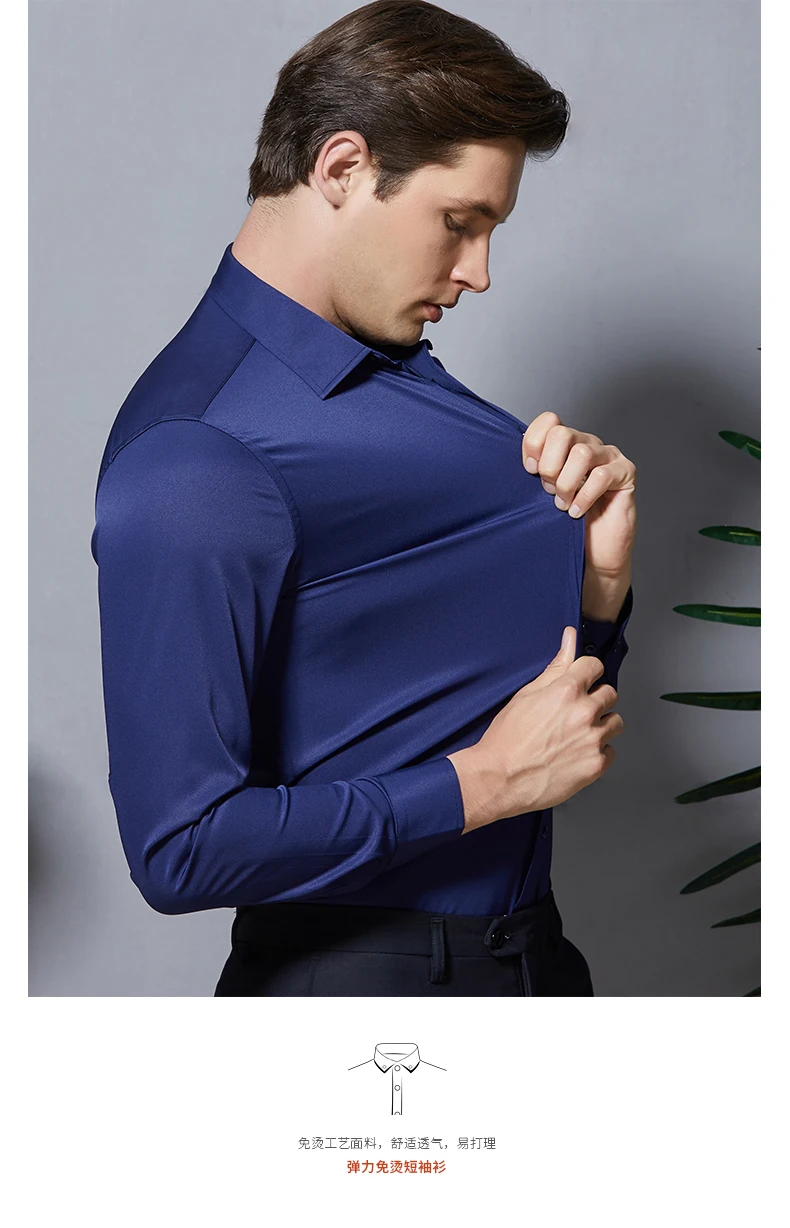 Мужские рубашки стрейч против морщин, повседневные облегающие рабоч...
