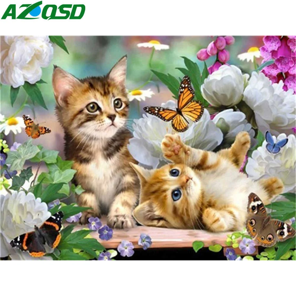 AZQSD 5D DIY Daimond картина мозаика животное полное квадратное сверло Алмазная вышивка Стразы кошка ручная работа подарок украшение дома