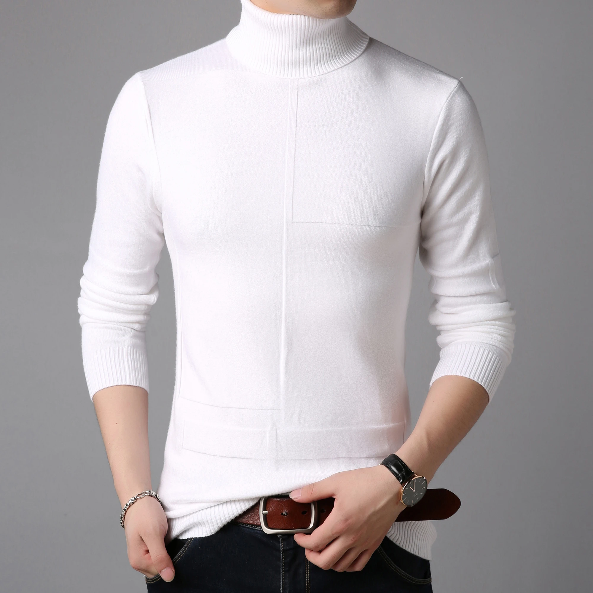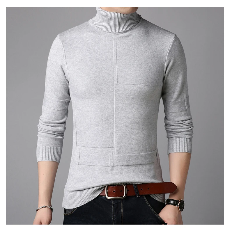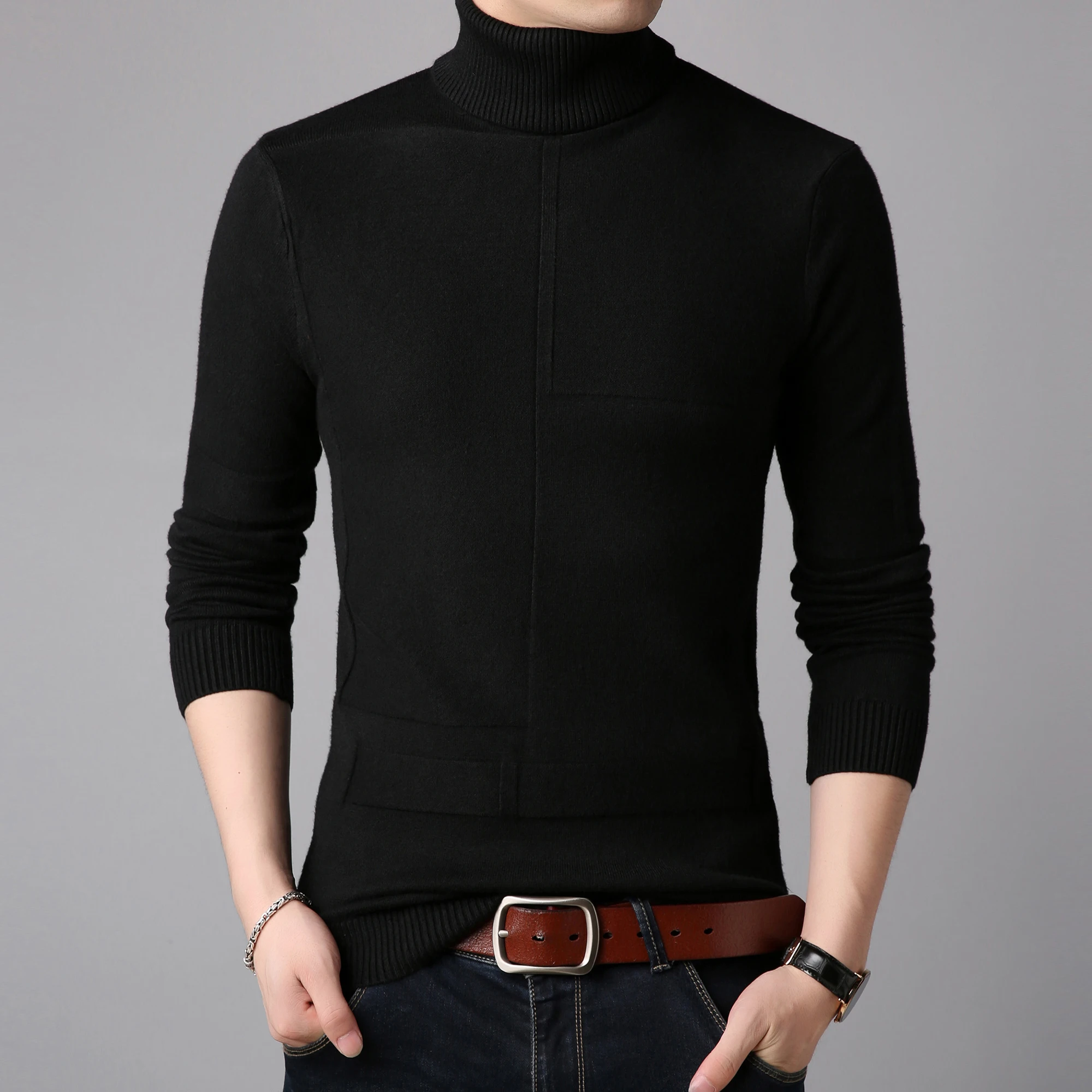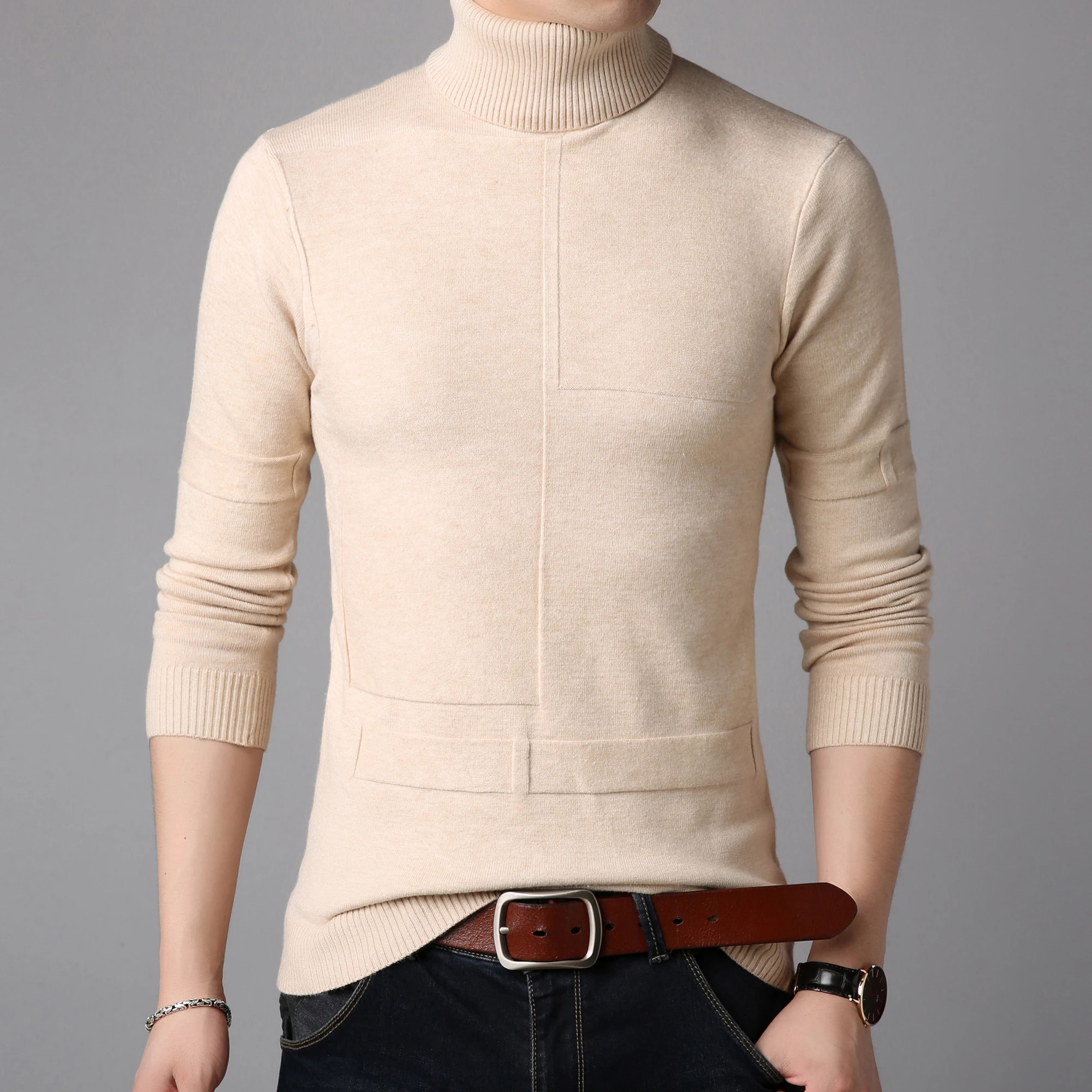Свитер с высоким воротом, мужские вязаные пуловеры, повседневные му...