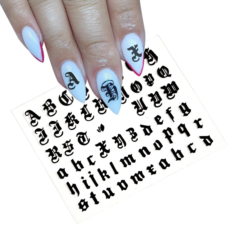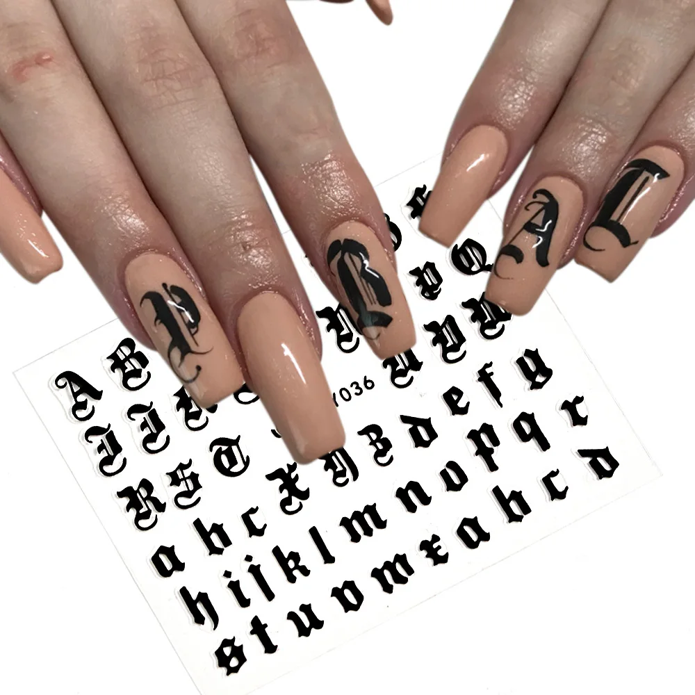 5 листовпартия, 3D наклейки для ногтей с буквами, наклейки для ногтей, наклейки с буквами старого английского алфавита, наклейки для ногтей, самодельные Украшения для ногтей