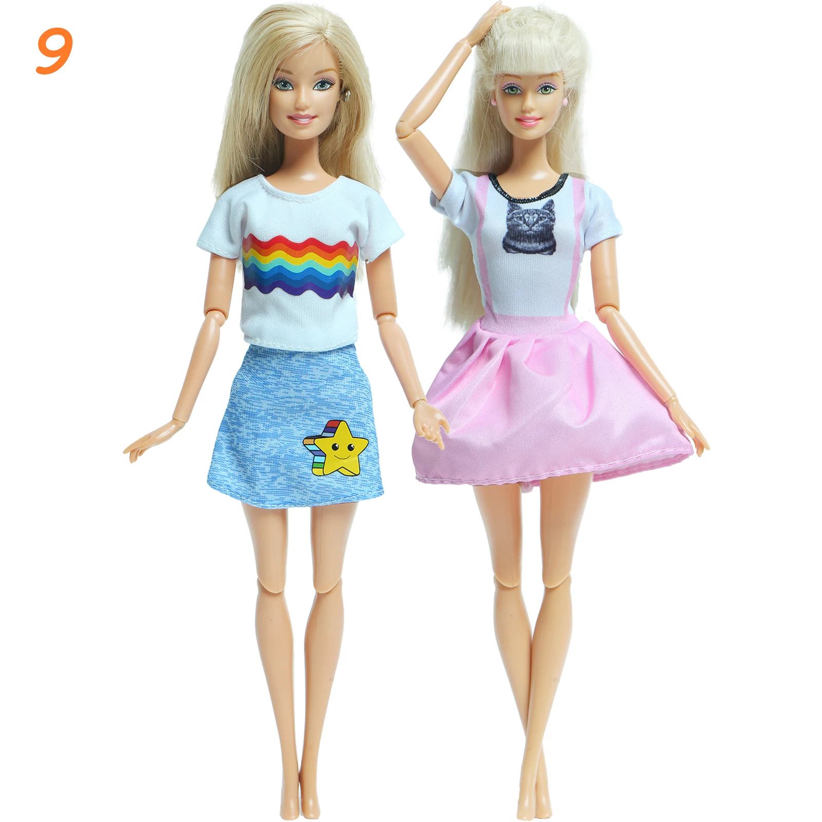 Одежда для девочек 2 комплекта, модная повседневная одежда для девочек, блузка, рубашка, брюки, юбка, платье, кукла, аксессуары, одежда для куклы Барби, детские игрушки