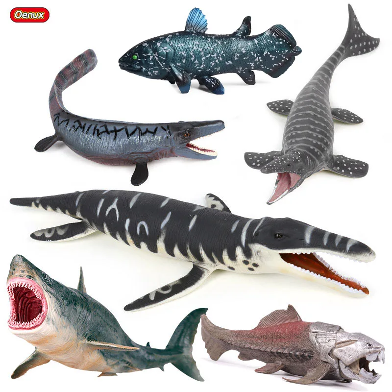 Особенности:Oenux доисторическая Морская жизнь животных Megalodon Dunkleosteus Terrelli рыба фигурку Плезиозавр Динозавр Модель Коллекционная игрушка