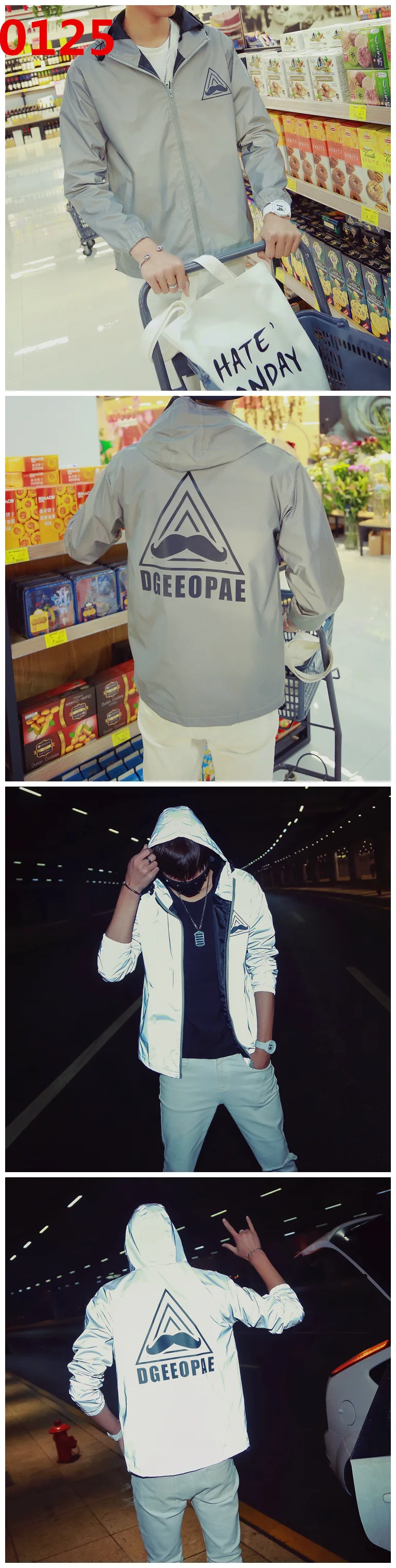 Светоотражающая куртка с капюшоном, Мужская ветровка в стиле Харадзюку, светоотражающая куртка 3 м, Мужская Уличная одежда, куртки для пар с подсветкой