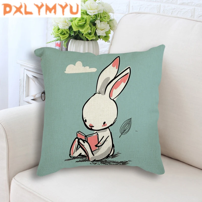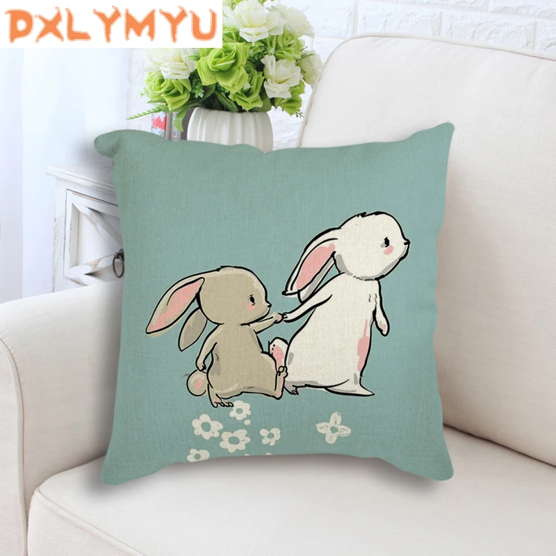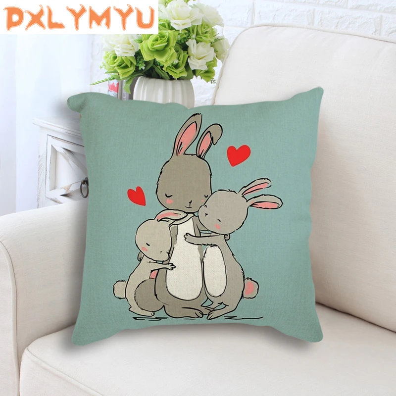 Льняной чехол для диванной подушки с изображением кролика и семьи животных, декоративный чехол для подушки, Рождественский декоративный чехол для подушки 45x45 см