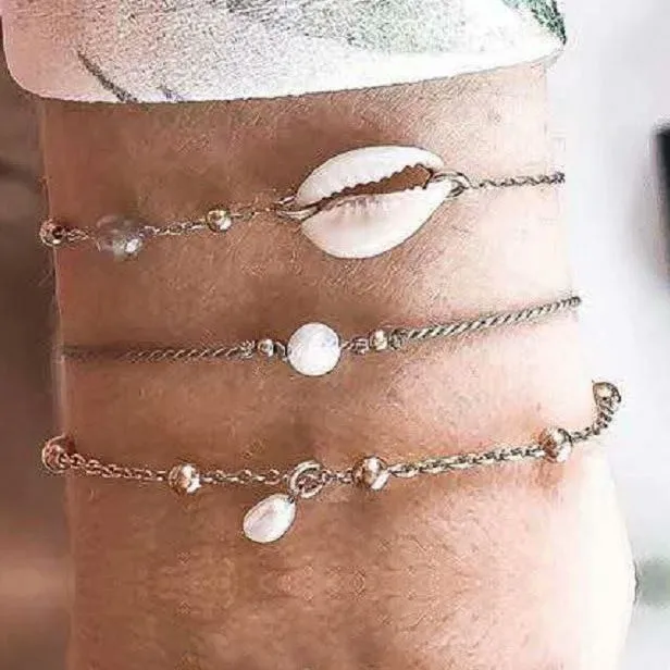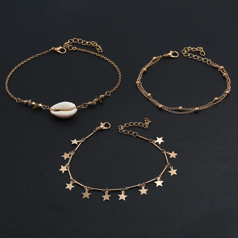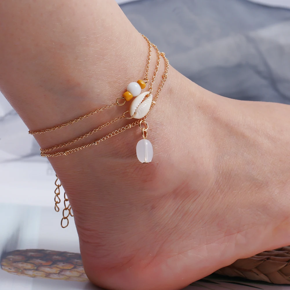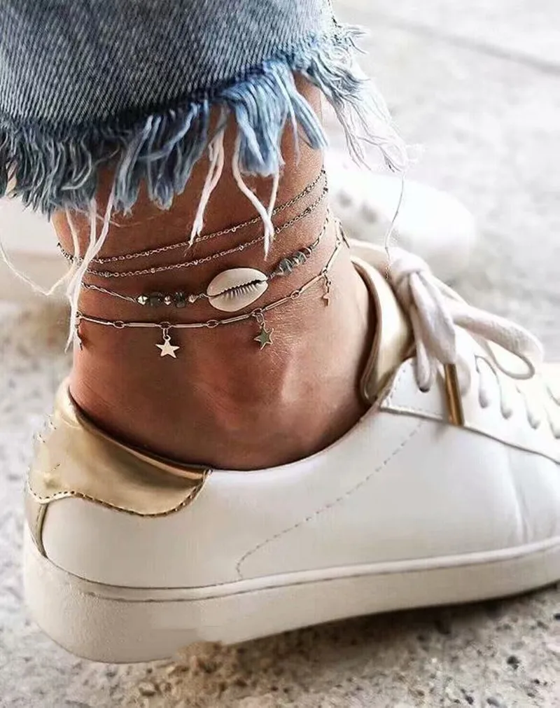 Аксессуары к одежде Модные Простые личности многорядные анклет (браслет на ногу с металлической Полумесяца звезда искусственный опал Природа оболочки Tobillera