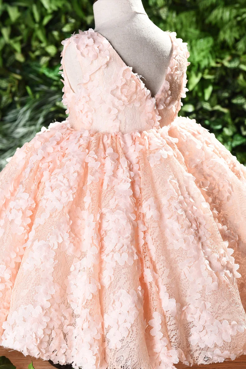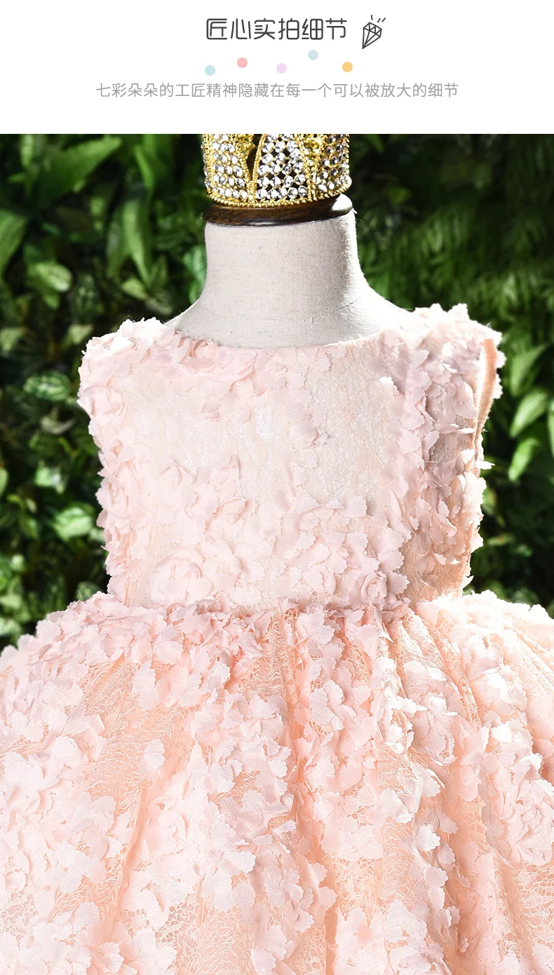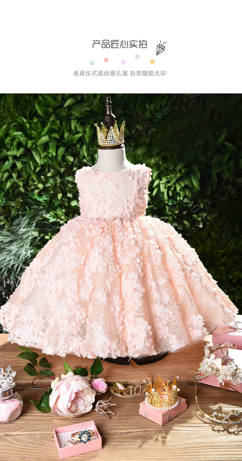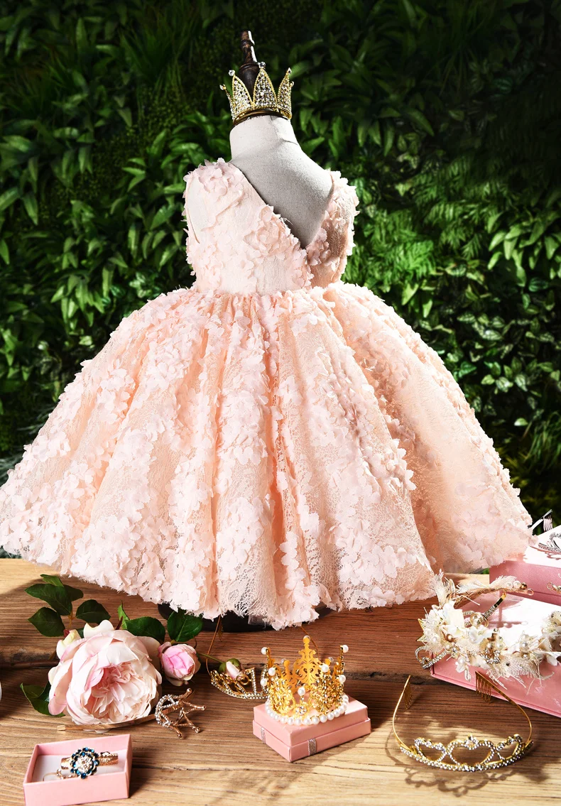 Детское кружевное платье с аппликацией, розовое платье принцессы для крещения, на день рождения, лето 2021