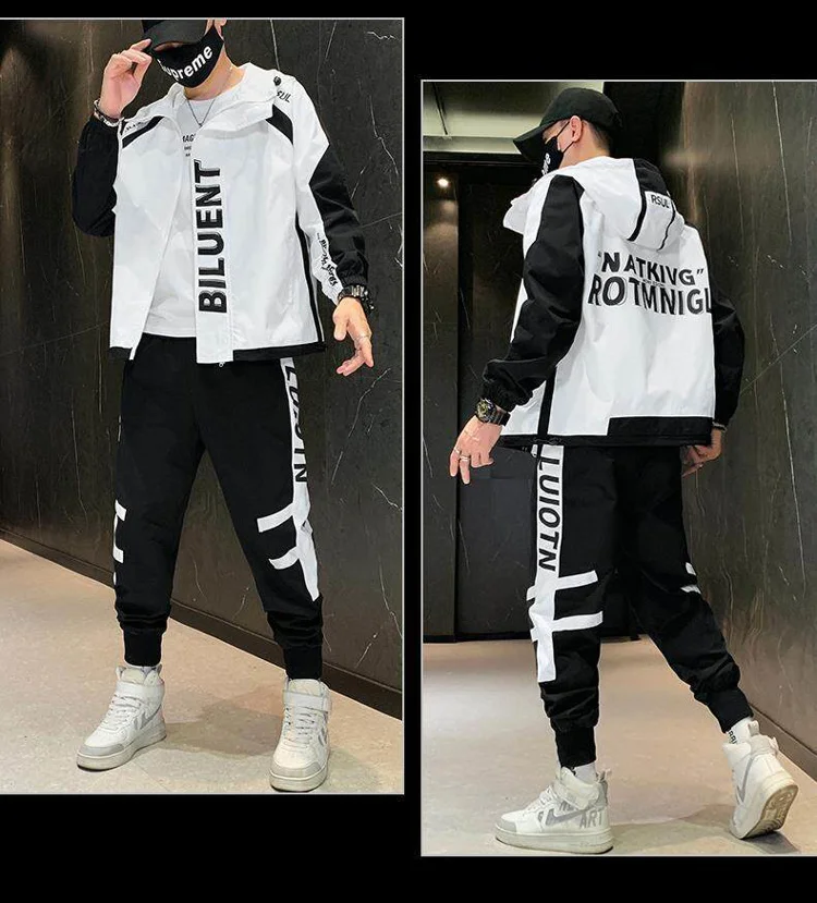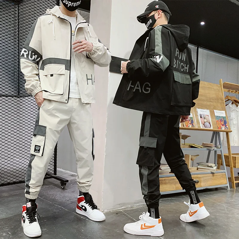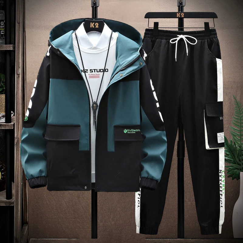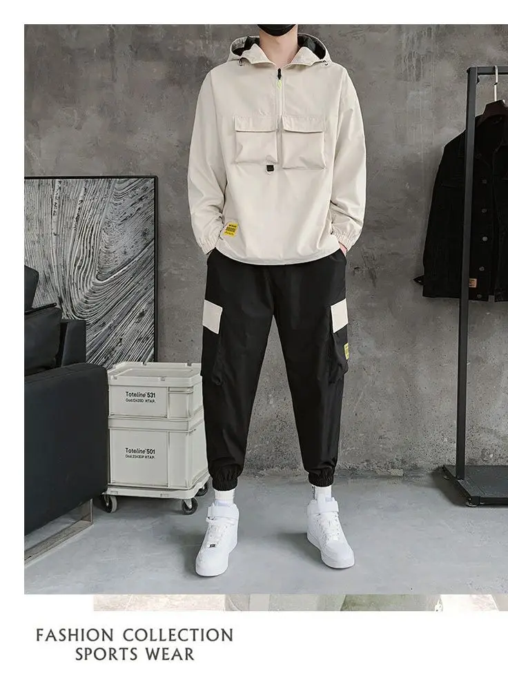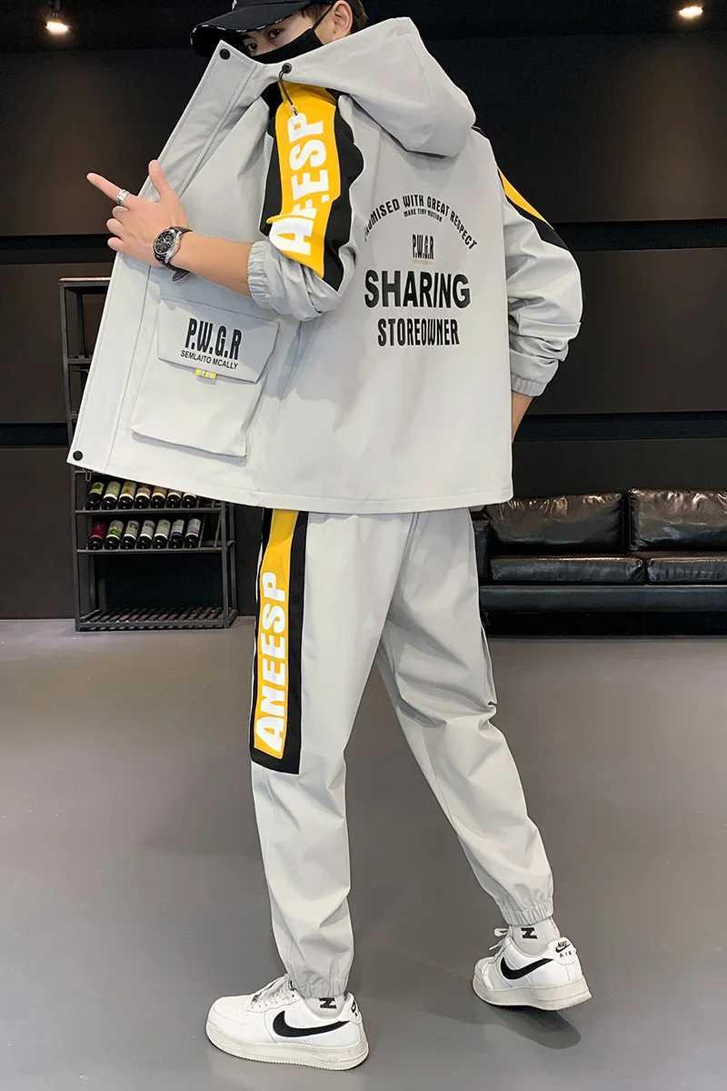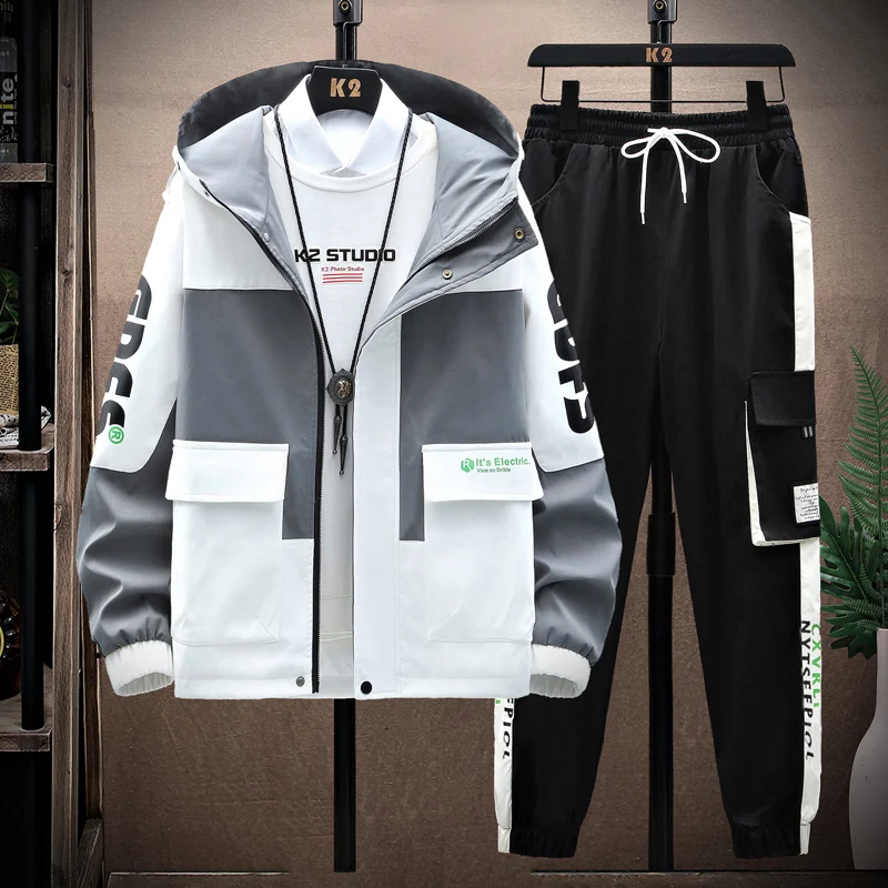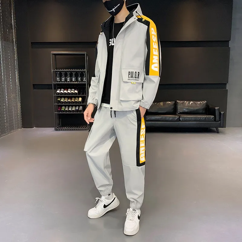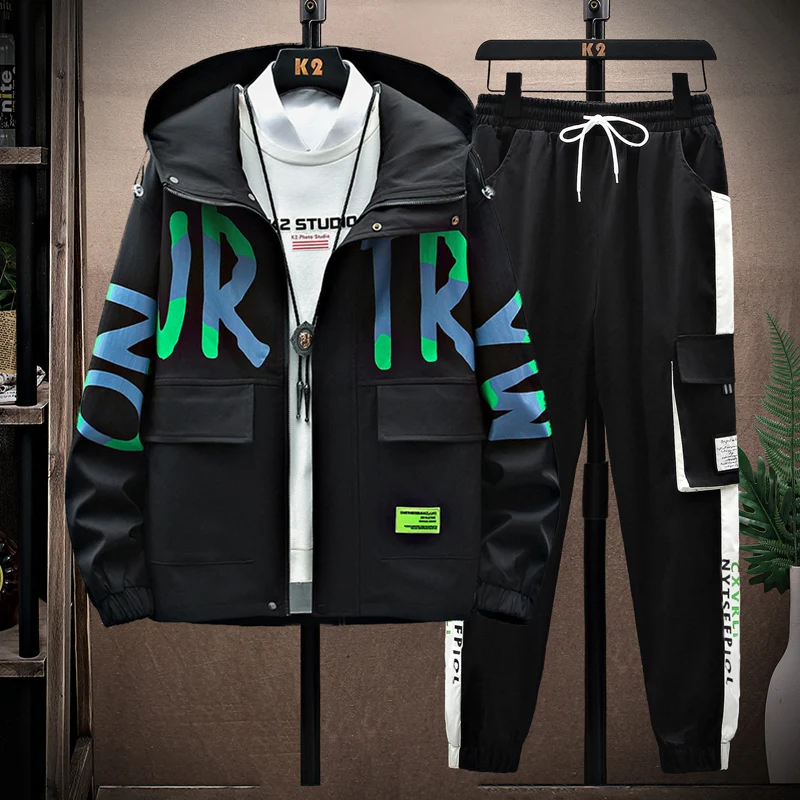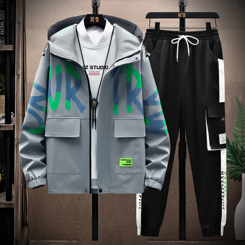 2 шт.комплект, мужская куртка с капюшоном и брюки