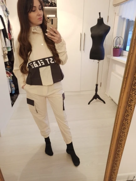 костюм очень стильный, смотрится круто как на девушке так и на парне. покупкой довольна, НО!!! ткань мне не понравилась: она тонкая, полупрозрачная, не водоотталкивающая (возможно это конкретно у этой модели). И ещё очень короткие штаны: мой рост 163 см и даже мне они чуть коротковаты! мои параметры 90\ 70\90.