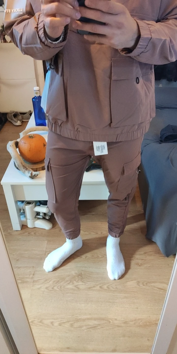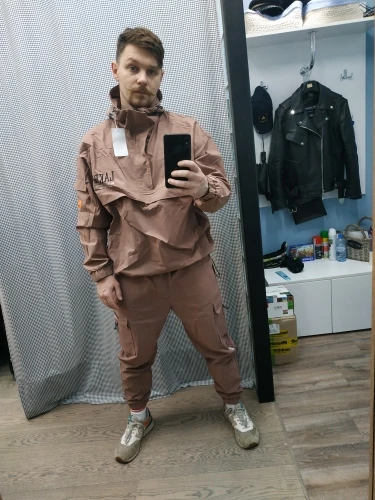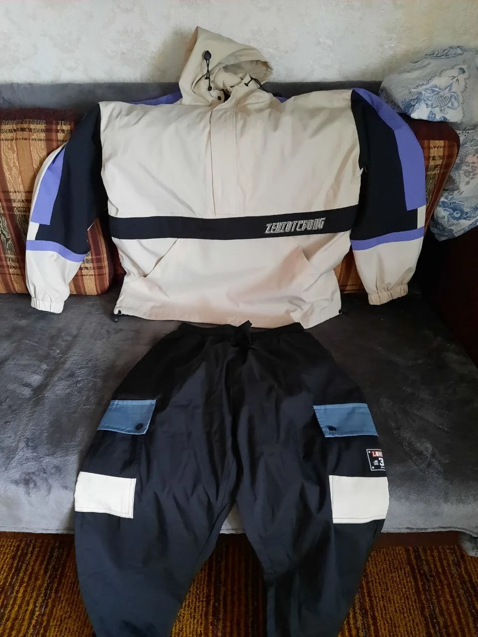 Не обманывайте себя, тонкая ткань из которой даже на рынок вещи не делают, штаны сделаны так, чтобы не давать ходить, куртка ещё более менее пока не вывернул наизнанку и не увидел пучок ниток и кучу строчек непонятных, продают брак за большие бабки по меркам алика