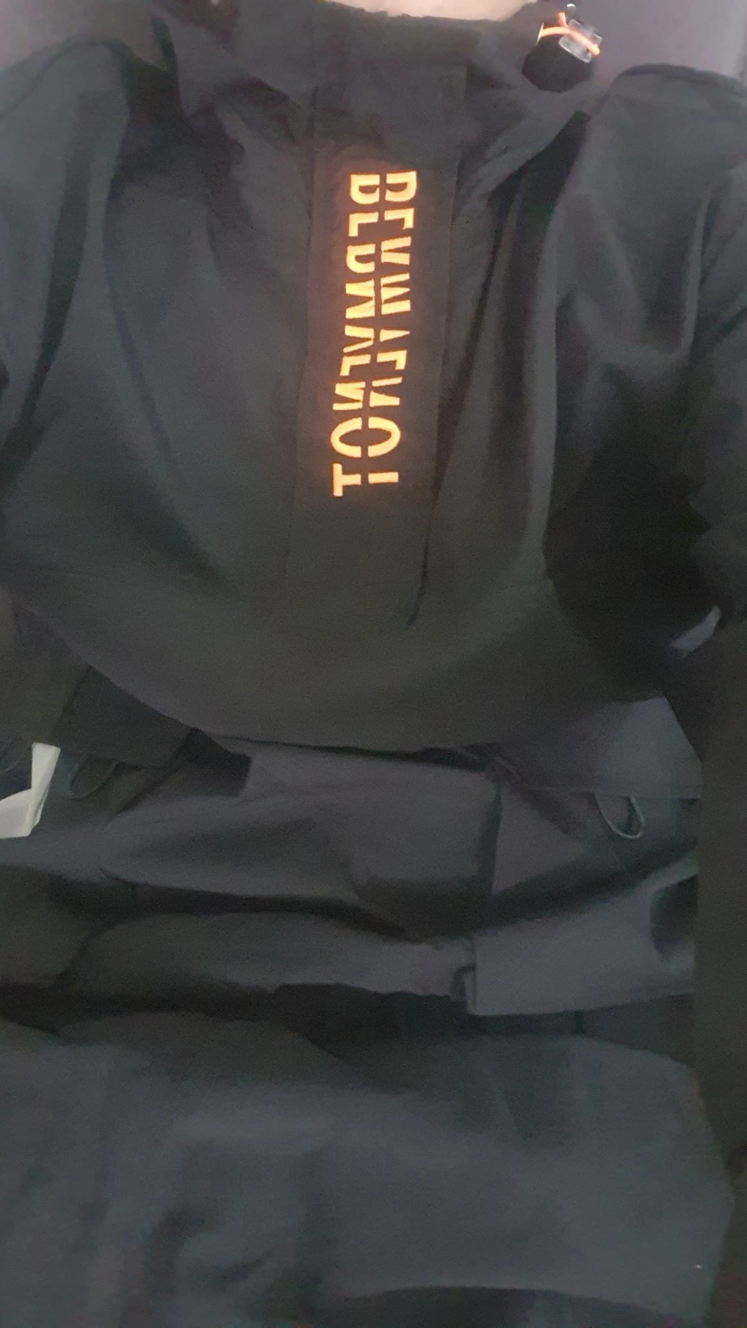 костюм на наш 50 размер, сшит качественно. Белая вставка на кармане на пузе - это отдельный кармашек из матового полупрозрачного пластика. Нитки не торчат. Доставка быстрая. Все довольны